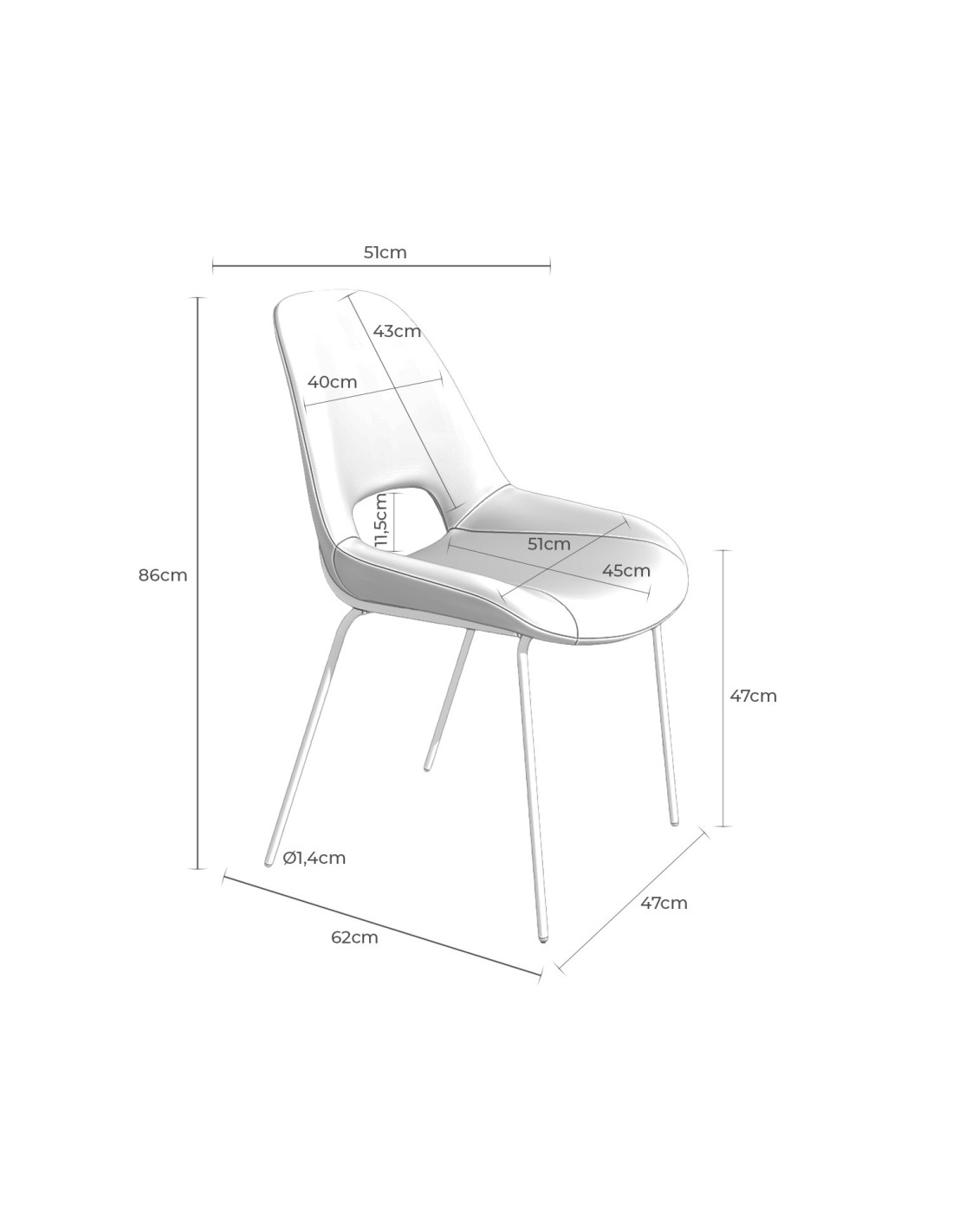 La silla SILAS se distingue por su apertura en el respaldo, elegantemente enmarcada con metal negro que complementa perfectamente la estructura y las patas. Este detalle no solo añade un toque de sofisticación, sino que también realza su diseño moderno. Además, su forma curva no solo aporta originalidad y belleza, sino que también garantiza una comodidad excepcional, haciendo de la silla SILAS una elección ideal tanto para espacios contemporáneos como clásicos.