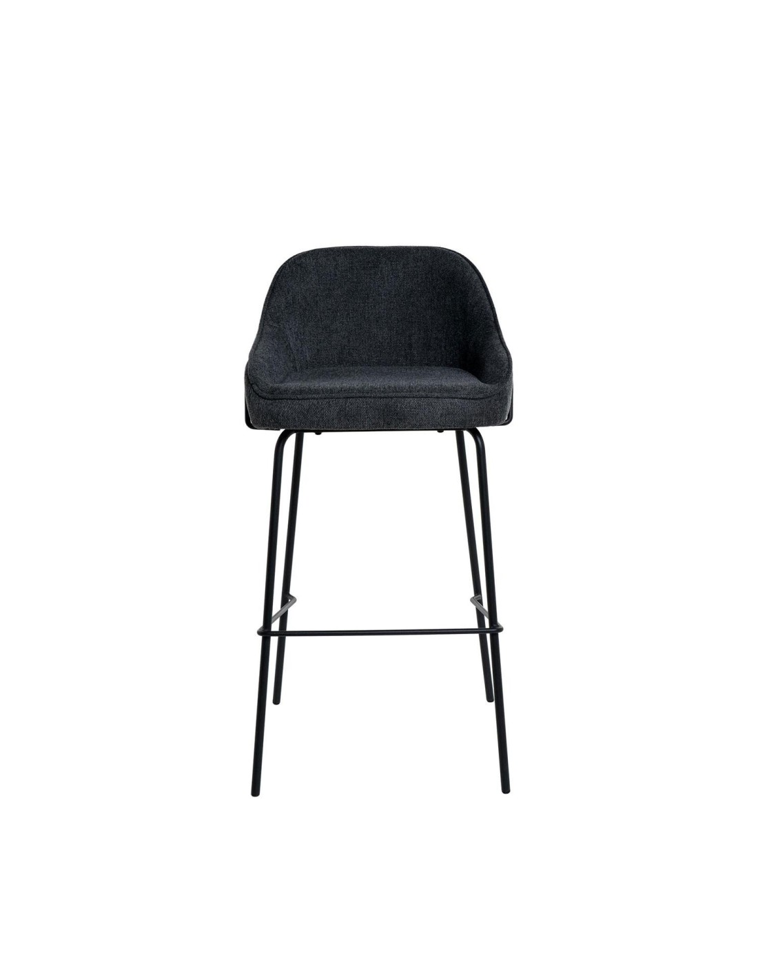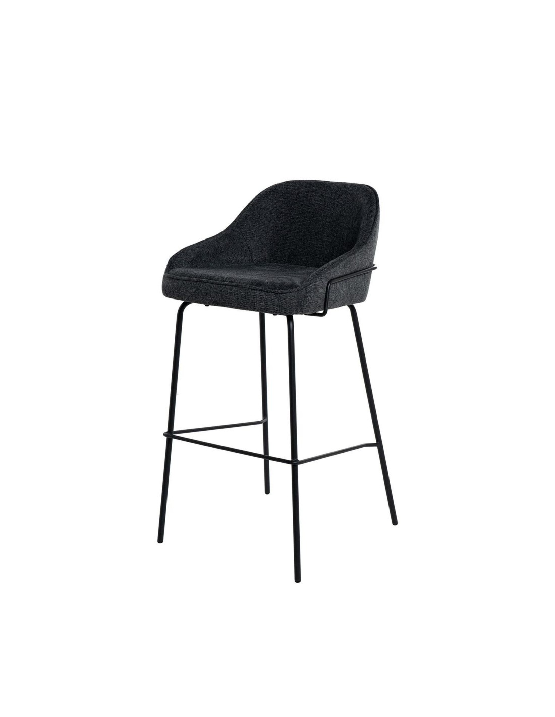 Este taburete alto es ideal para cocinas o bares, gracias a su diseño minimalista y elegante. El asiento está tapizado en tela de color gris oscuro (100% poliéster), proporcionando un tono neutro y sofisticado. La estructura y las patas de metal añaden un toque moderno y resistente. El taburete alto ROBAG se distingue por la integración de su respaldo con los reposabrazos, ofreciendo una comodidad y soporte adicionales que lo hacen perfecto para largas sesiones de uso.
