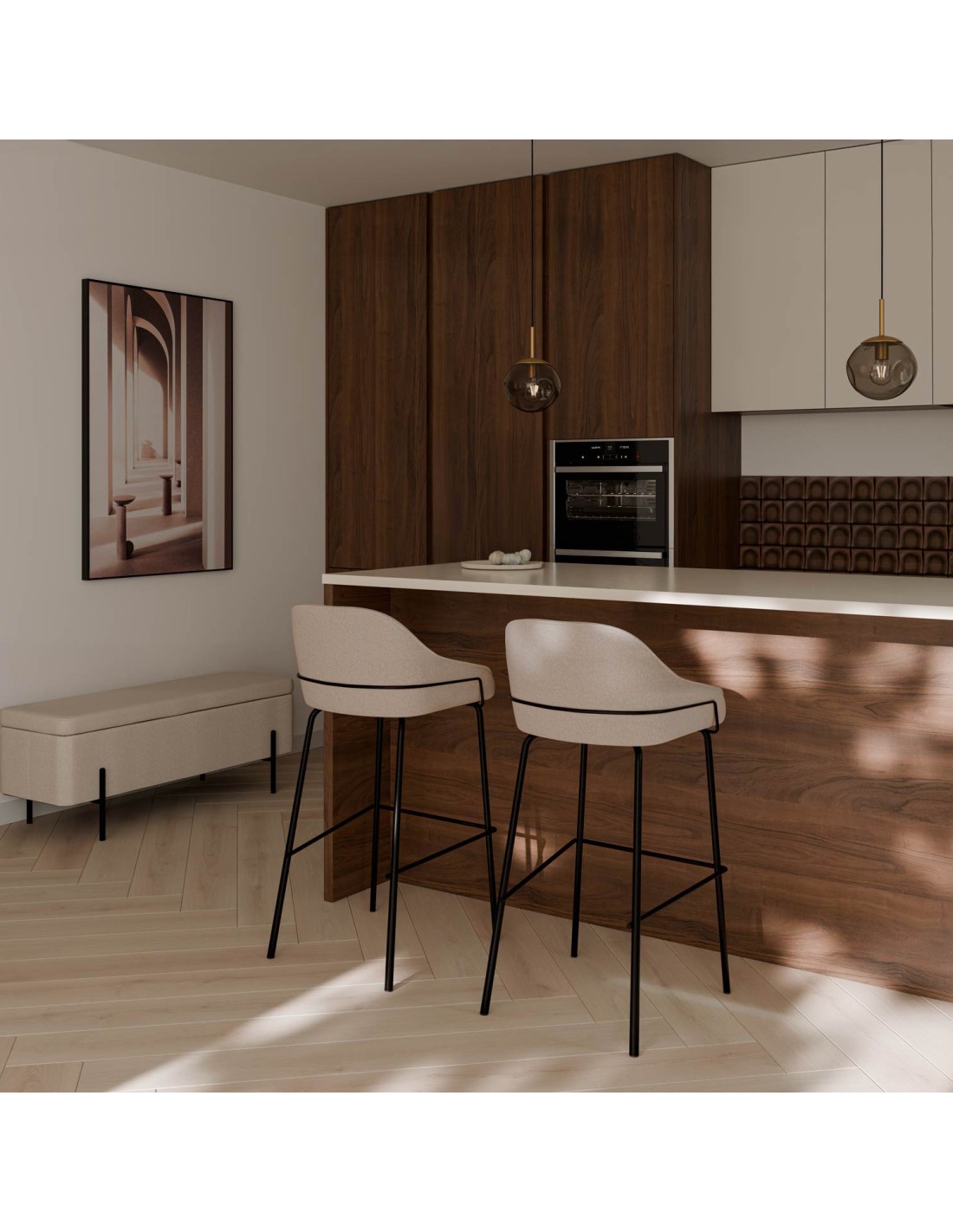Taburete Alto ROBAG 77 cm, Textil / Metal / Contrachapado / Beige