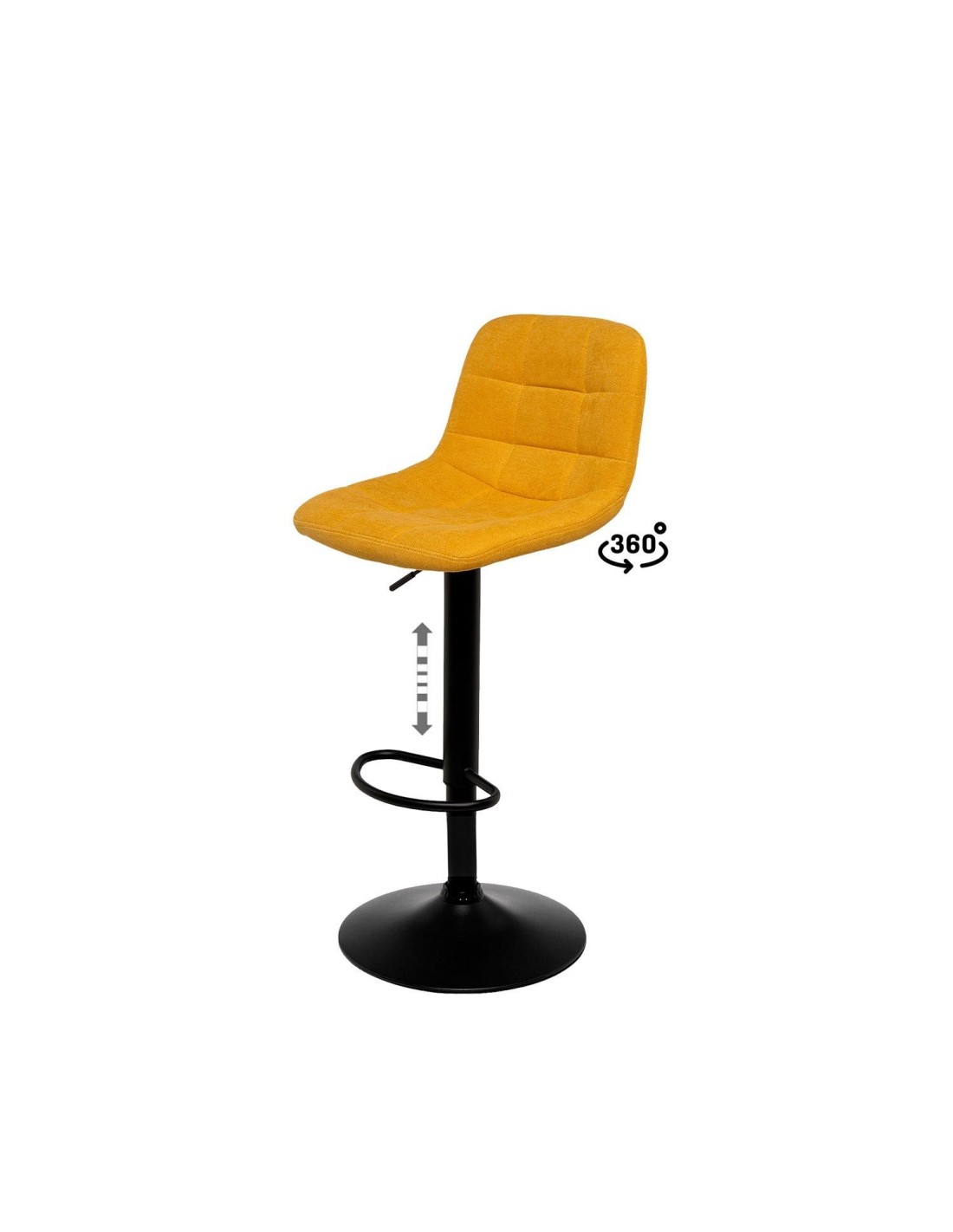Taburete Alto Regulable RAYNE 60/82 cm, Textil / Metal / Contrachapado / Mostaza