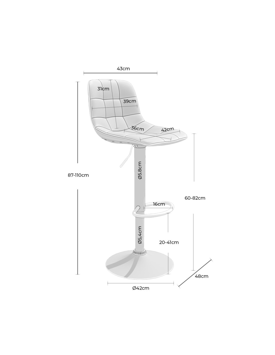 El taburete RAYNE te permite ajustar la altura del asiento según tus necesidades, gracias a su práctico mecanismo de elevación por pistón. Además, su capacidad de giro de 360º te ofrece una total libertad de movimiento. Su tapizado acolchado en color mostaza, hecho de 100% poliéster, añade un toque de elegancia y confort. La estructura metálica en mate negro completa su aspecto contemporáneo y sofisticado. Con un diseño moderno, el taburete RAYNE no solo es un elemento decorativo ideal, sino que también proporciona una gran comodidad.