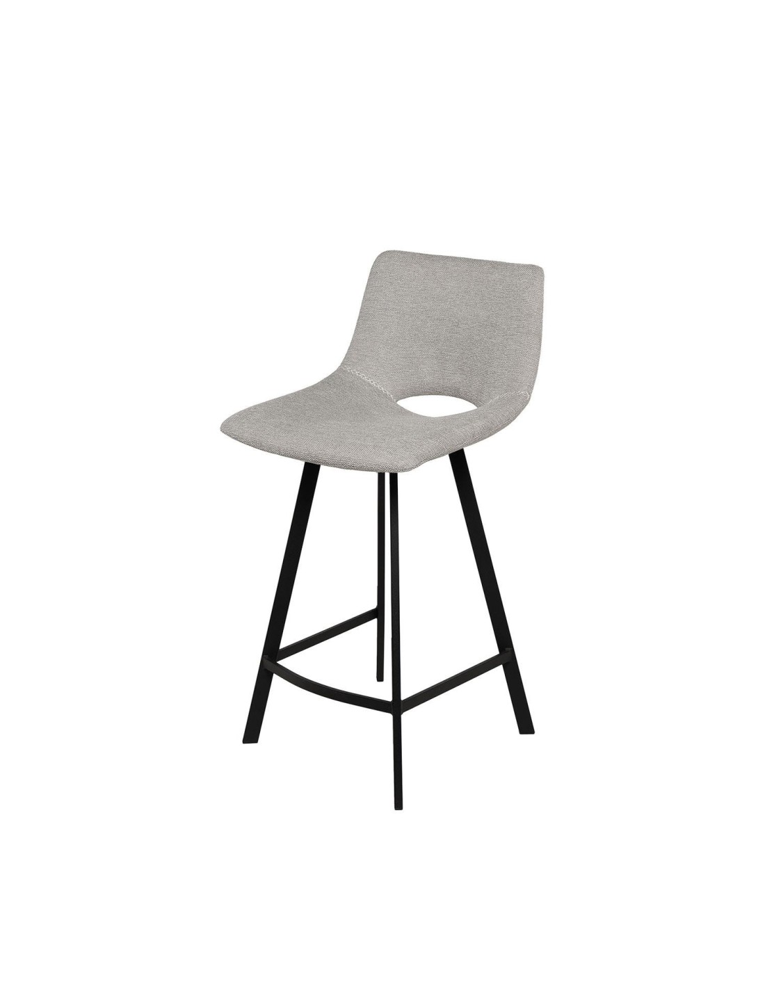 Funcional, sofisticado y moderno, el taburete alto BIRGER se integra fácilmente en cualquier ambiente. Tapizado en un elegante tejido gris 100% poliéster, y con un distintivo agujero entre el respaldo y el asiento, este taburete ofrece un diseño único y peculiar. Sus patas de metal negro, junto con la barra de apoyo delantera y lateral, garantizan estabilidad y durabilidad, haciendo del taburete alto BIRGER una opción perfecta para barras de cocina, bares o zonas de descanso.