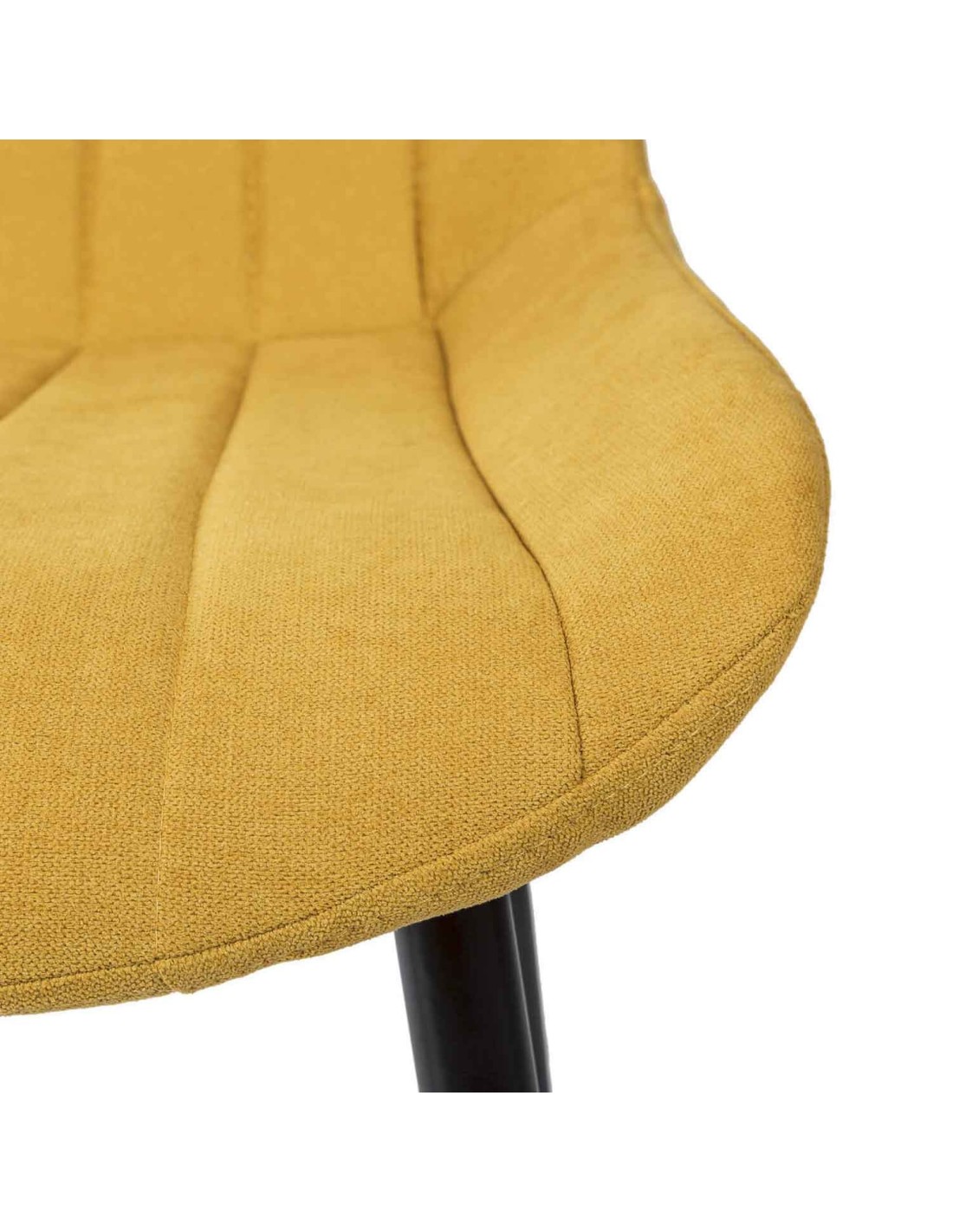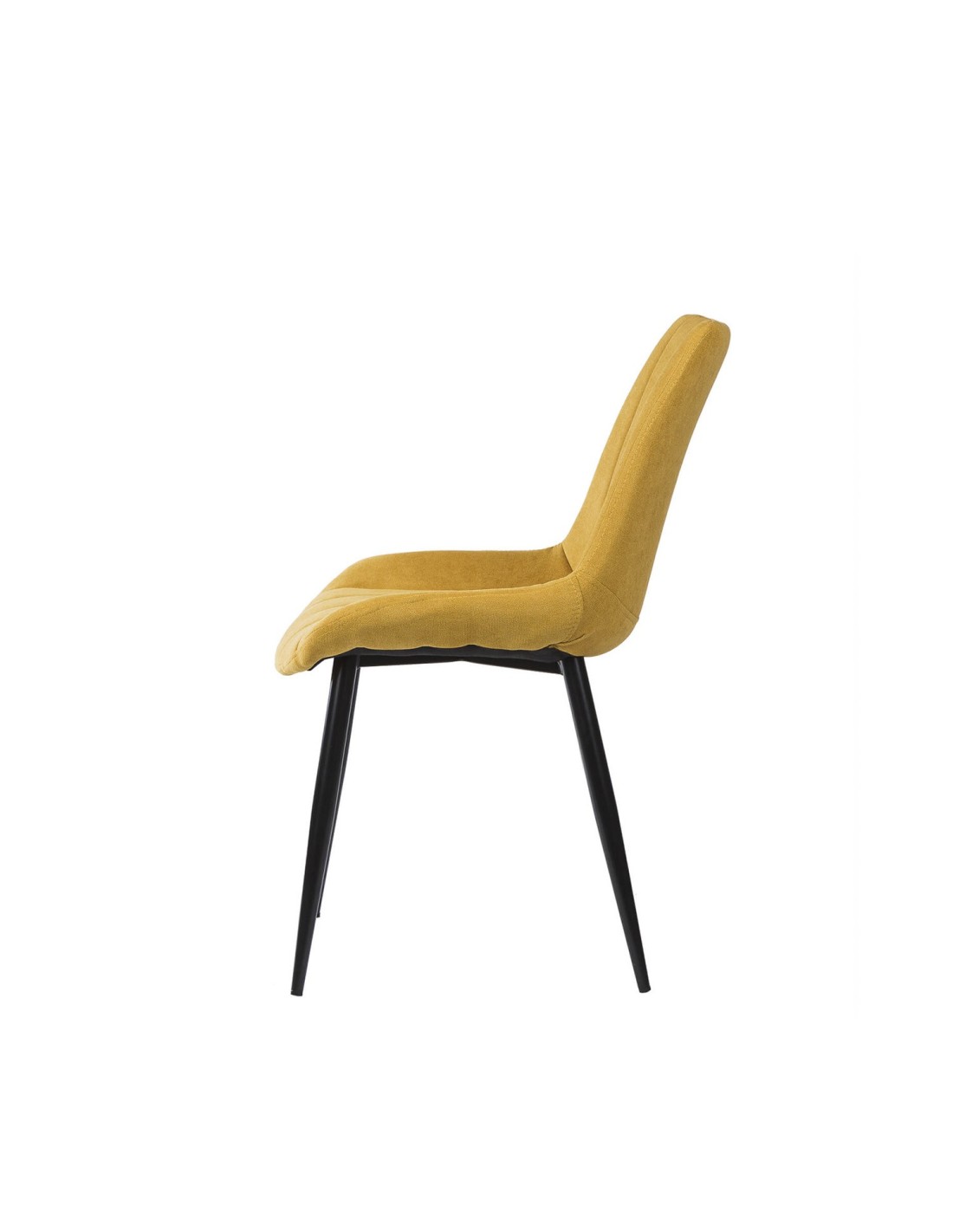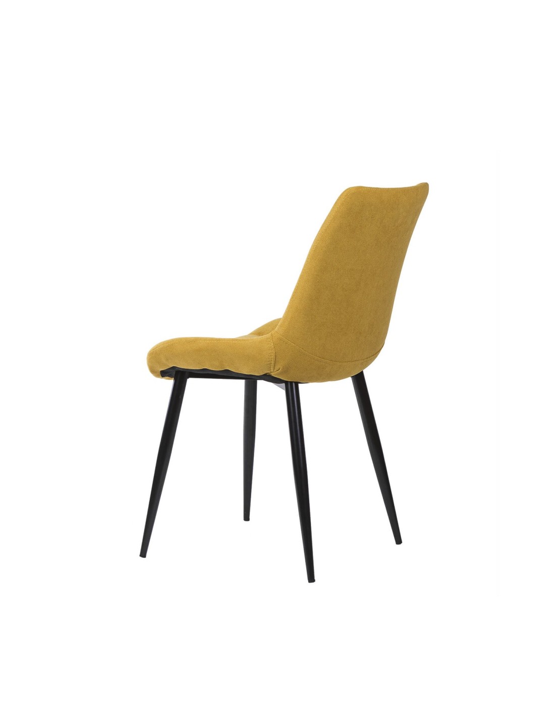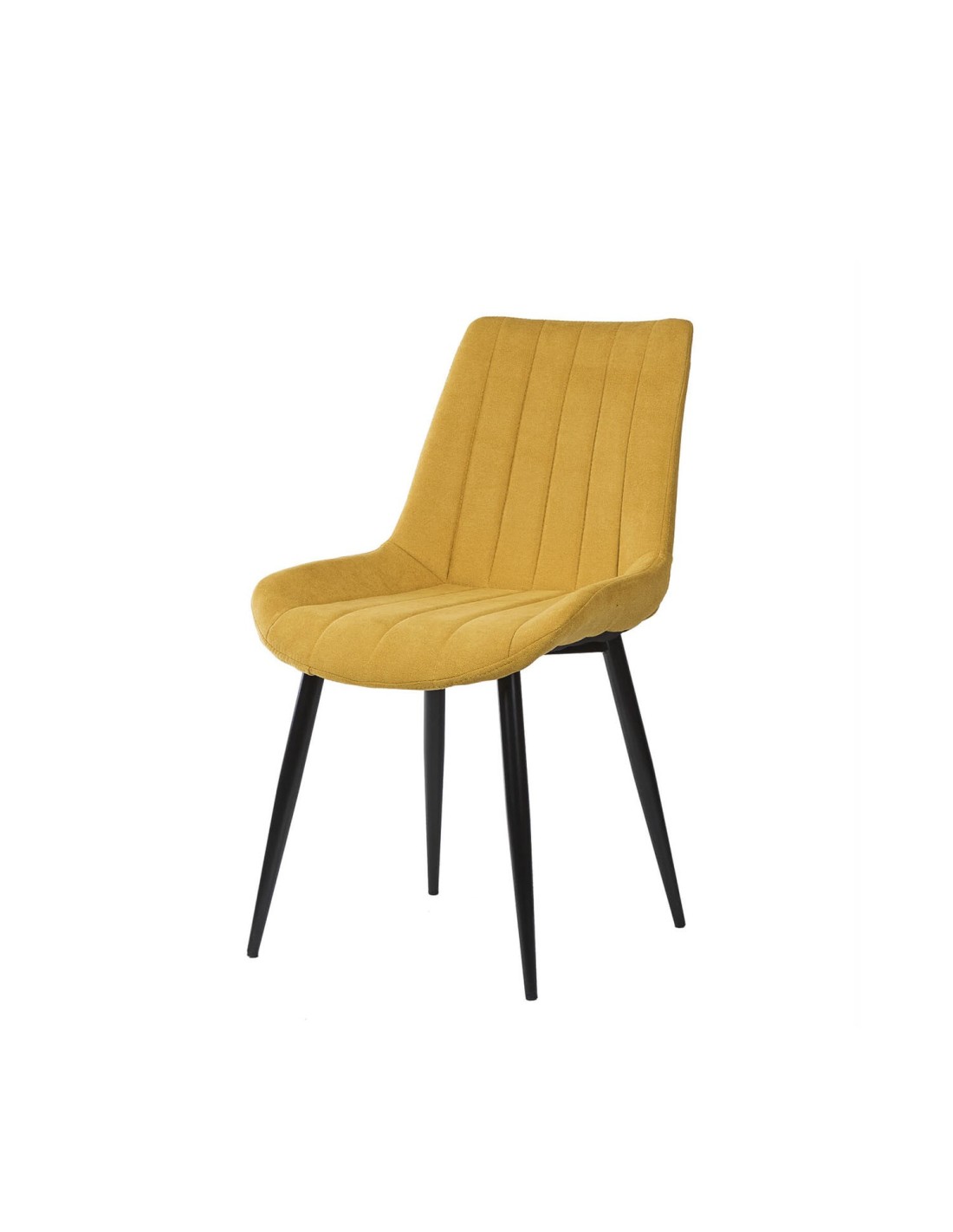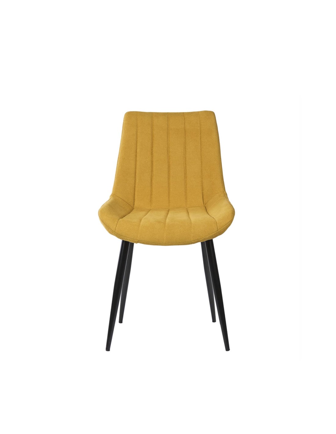 La silla ÅME es una elección versátil que se integra perfectamente en cualquier estilo de comedor, gracias a sus líneas neutras y elegantes. El tapizado en color mostaza, con una textura de líneas horizontales, aporta un toque de sofisticación y modernidad. Las patas cónicas metálicas, acabadas en color negro, no solo añaden un contraste visual atractivo, sino que también garantizan estabilidad y durabilidad. Además, tanto el asiento como el respaldo están generosamente acolchados, proporcionando un confort superior para disfrutar de largas comidas y reuniones.