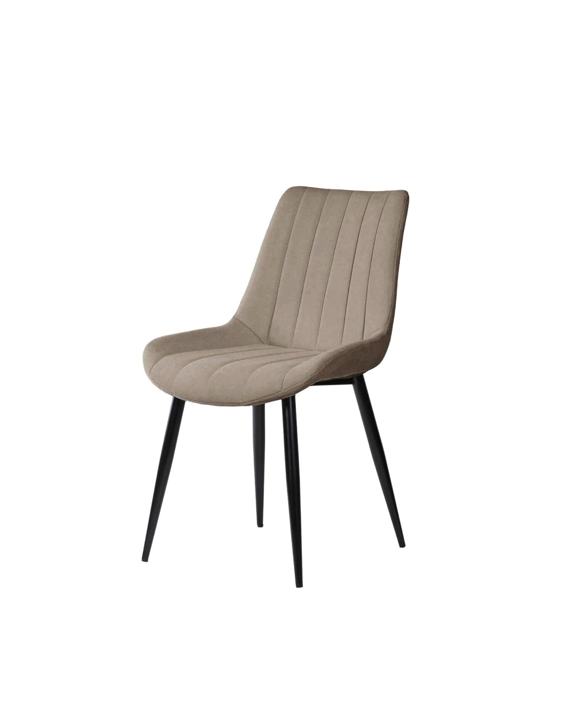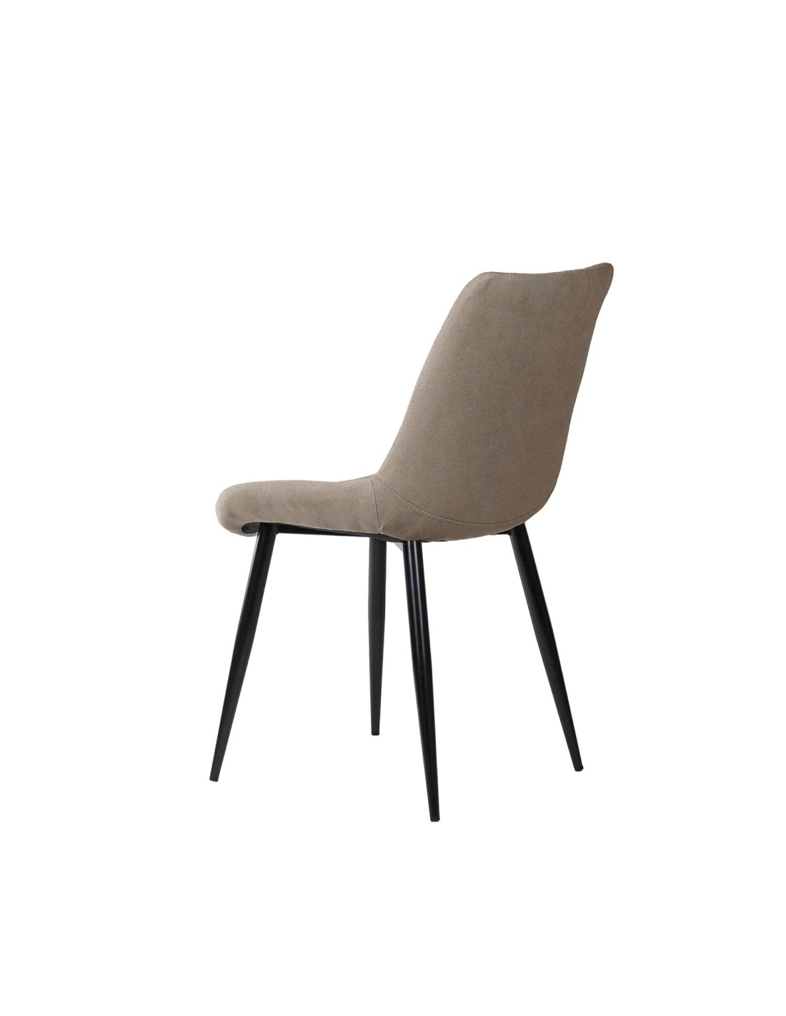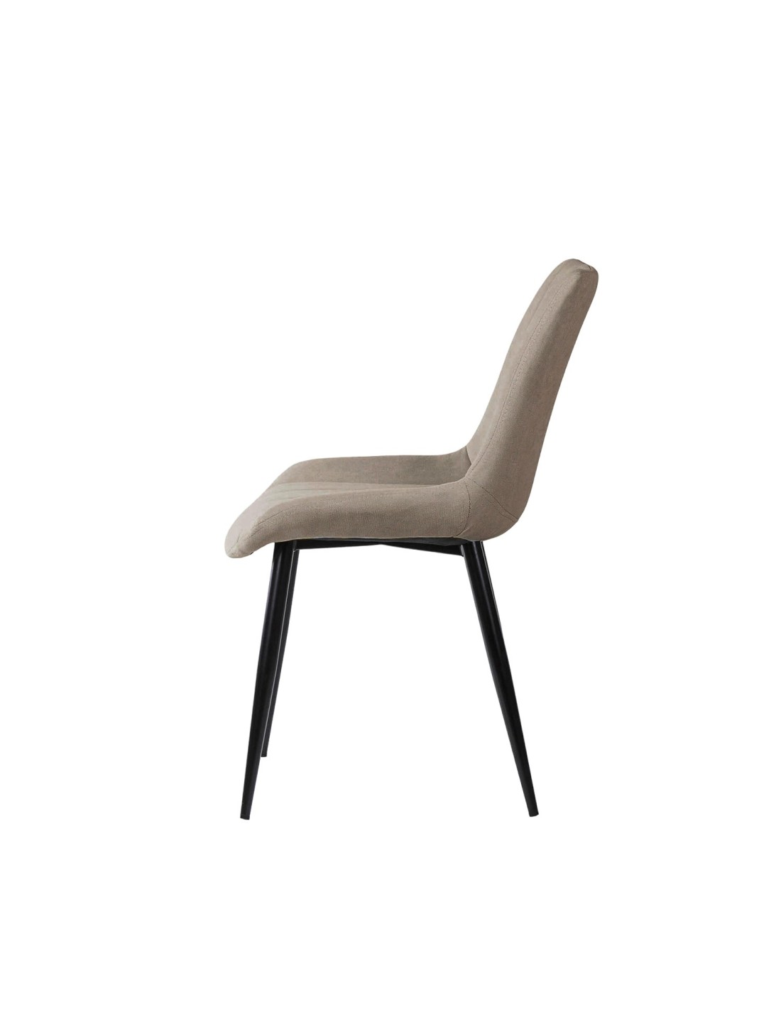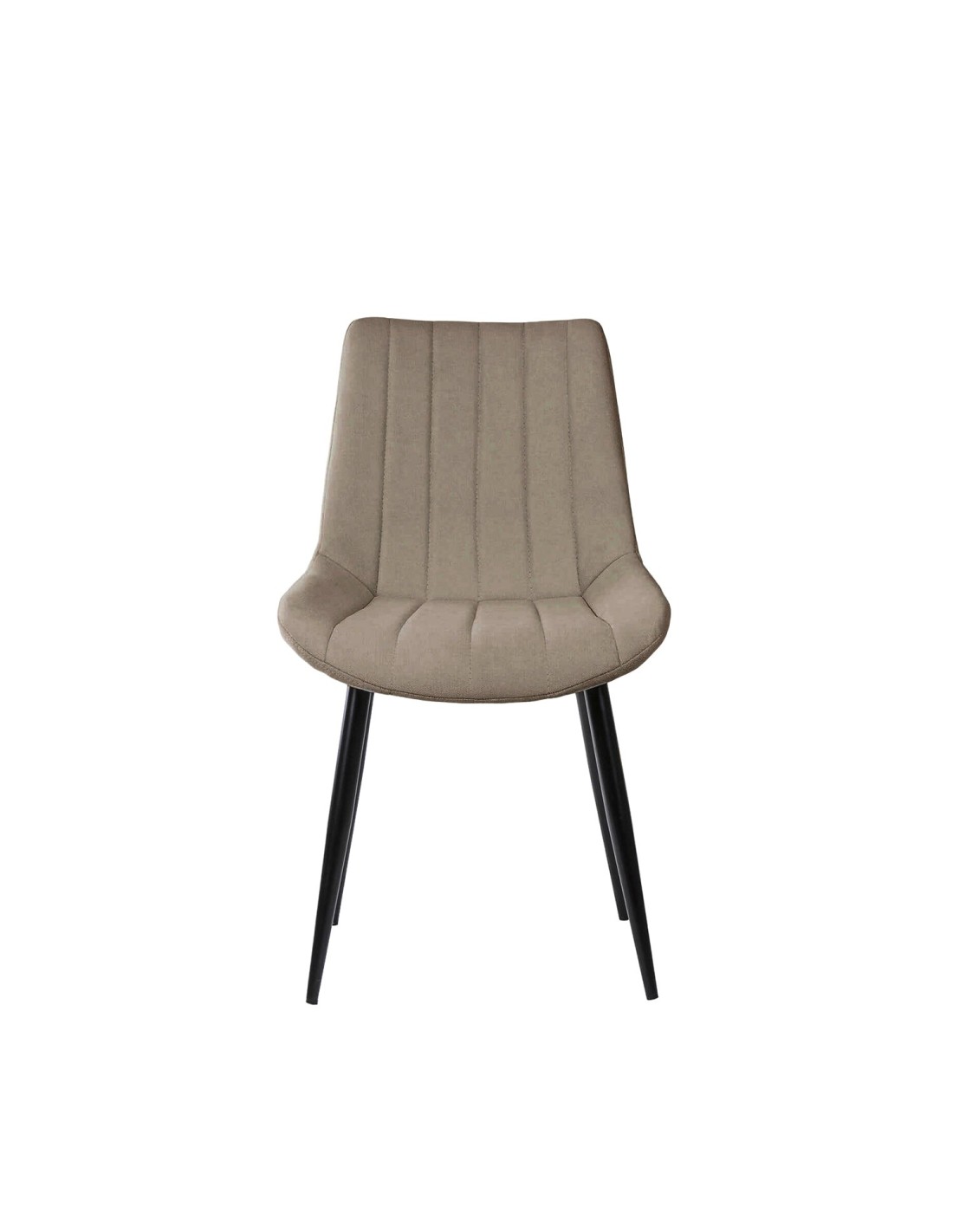 La silla ÅME es una elección versátil que se integra perfectamente en cualquier estilo de comedor, gracias a sus líneas neutras y elegantes. El tapizado en color taupe, con una textura de líneas horizontales, aporta un toque de sofisticación y modernidad. Las patas cónicas metálicas, acabadas en color negro, no solo añaden un contraste visual atractivo, sino que también garantizan estabilidad y durabilidad. Además, tanto el asiento como el respaldo están generosamente acolchados, proporcionando un confort superior para disfrutar de largas comidas y reuniones.
