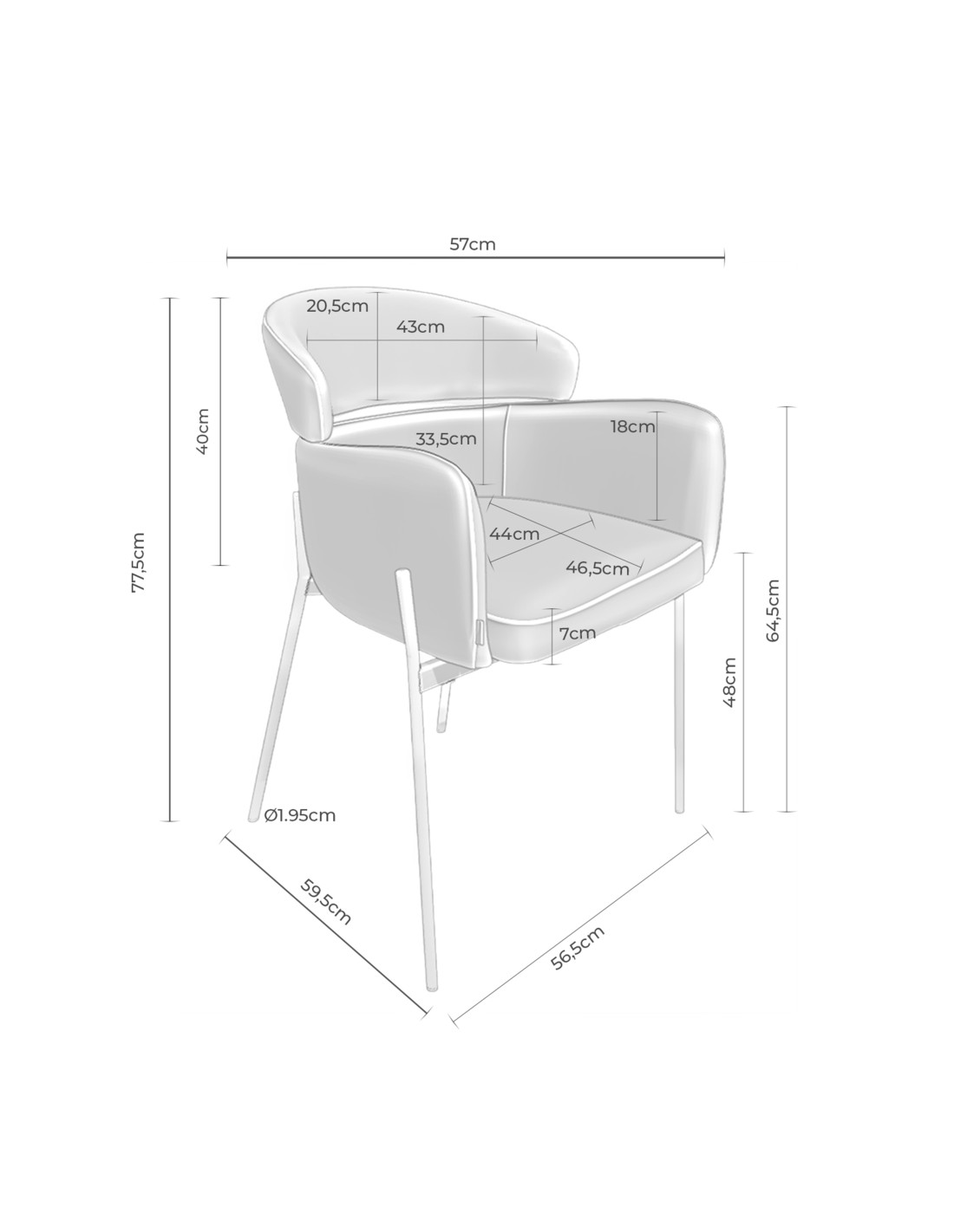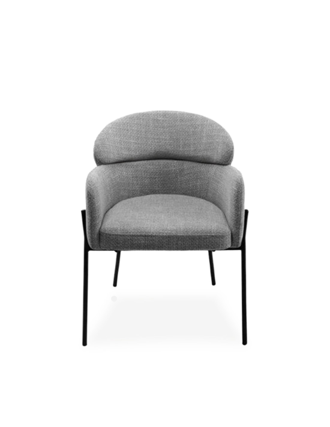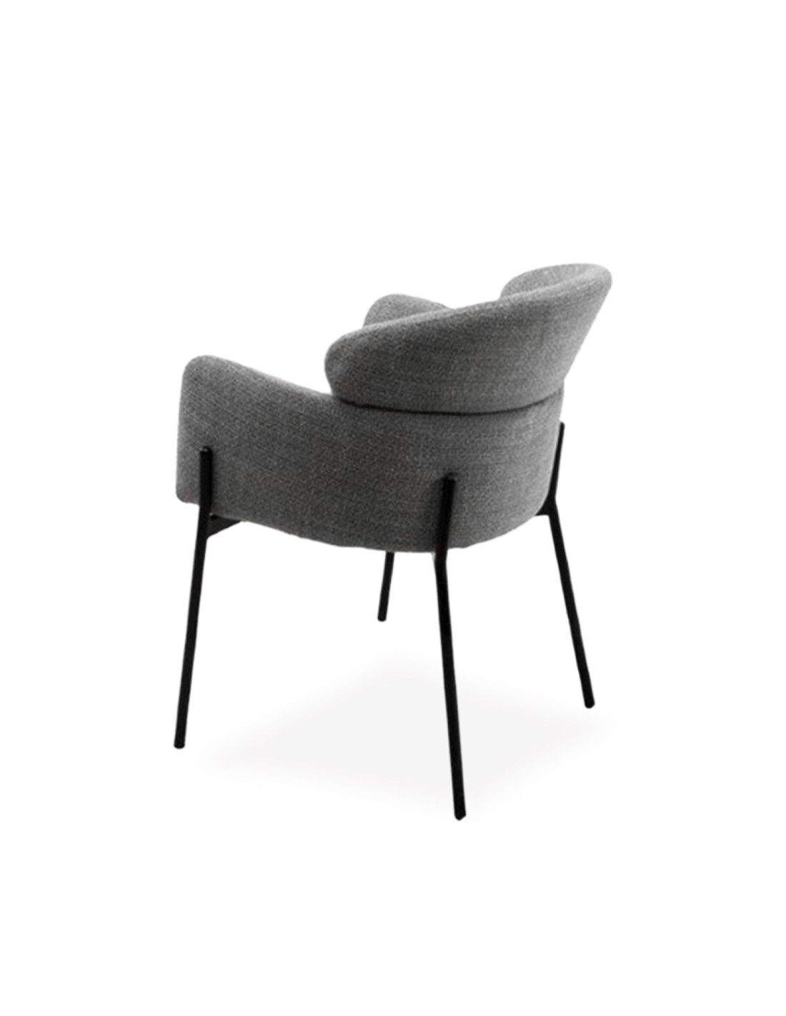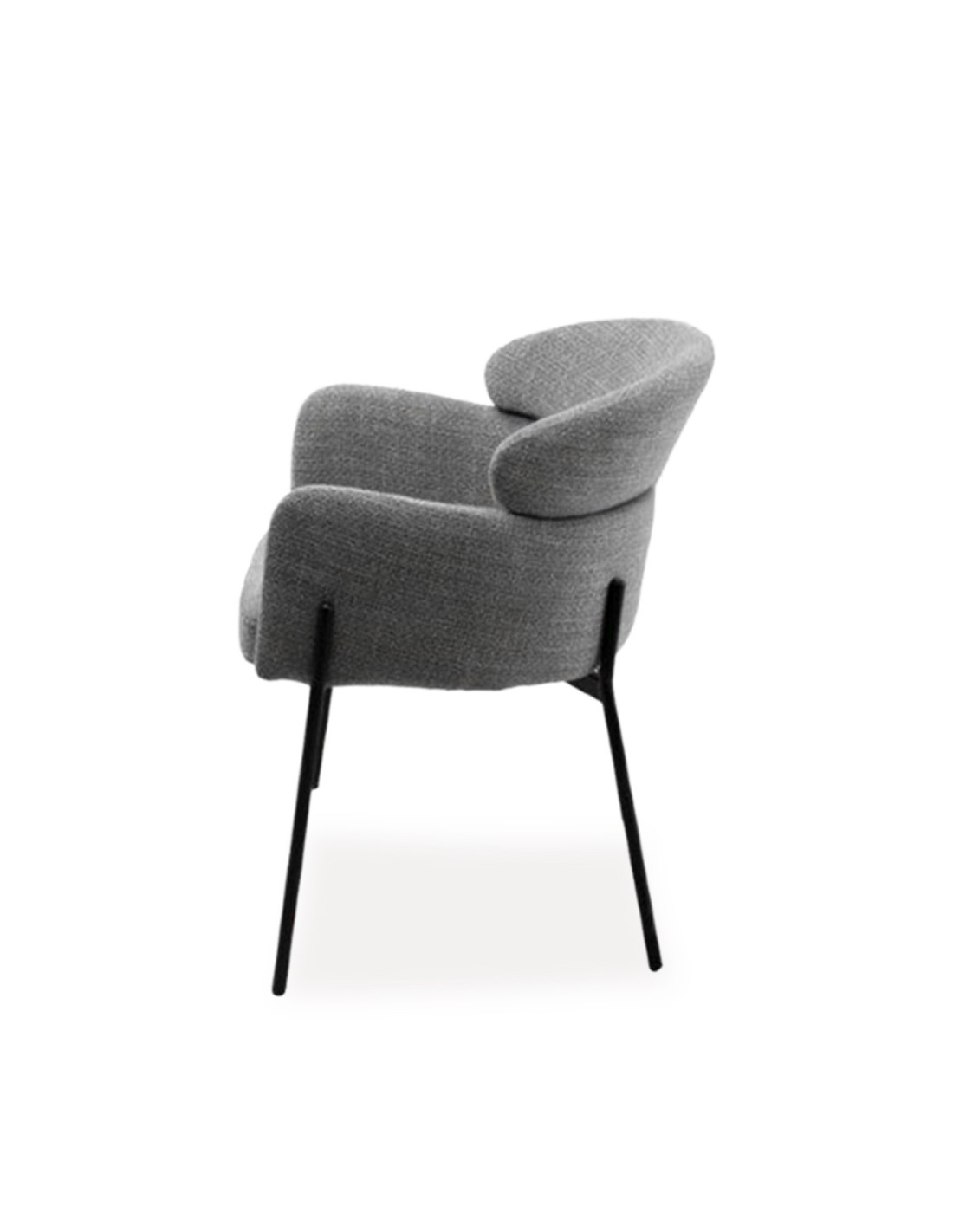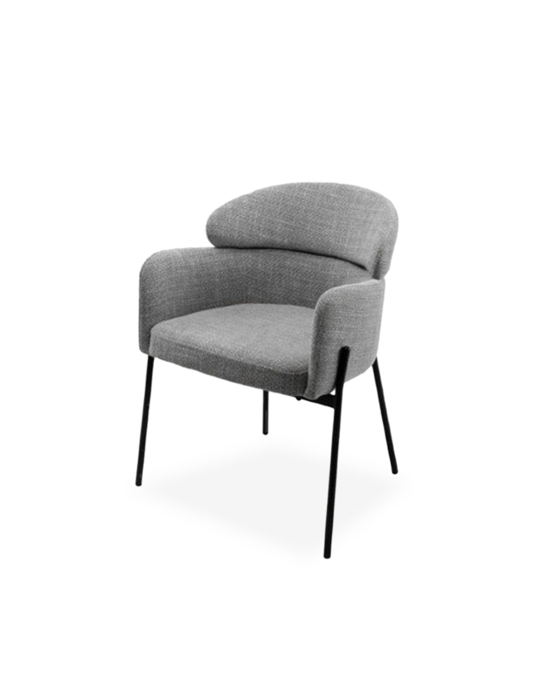 Este modelo de silla cuenta con un doble respaldo y reposabrazos acolchados, proporcionando comodidad y soporte. Su perfil elegante y líneas limpias se complementan con el tapizado en color gris claro, aportando un tono neutro y versátil, perfecto para combinar con diferentes estilos de decoración. El diseño de la silla SOLER combina elegancia y resistencia.