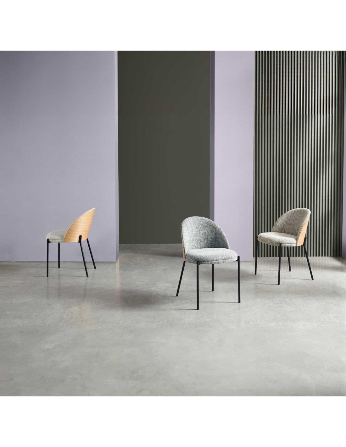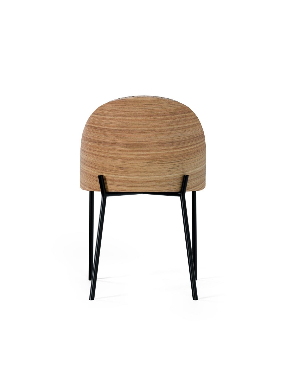 La silla CASANOVA destaca por su combinación elegante de diversas texturas, creando un diseño único y sofisticado. El tapizado textil del asiento y el respaldo, ambos acolchados, proporcionan una comodidad excepcional, invitando a disfrutar de largas sobremesas. Las patas metálicas en color negro no solo añaden un toque moderno y elegante, sino que también aseguran una gran estabilidad y durabilidad. Finalmente, el respaldo en chapa de madera es el sello distintivo de la silla CASANOVA, aportando un aspecto natural y de alta calidad que realza cualquier espacio. Esta armoniosa combinación de materiales hace de la silla CASANOVA la elección perfecta para aquellos que buscan un mobiliario de comedor que combine diseño, estilo y confort.
