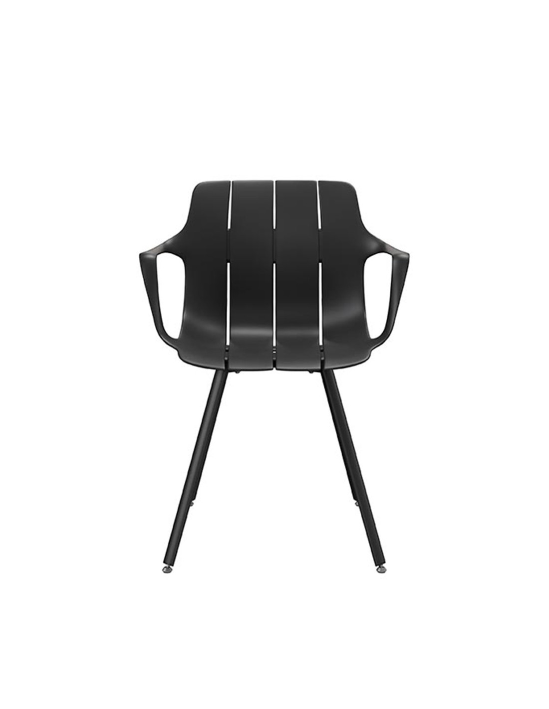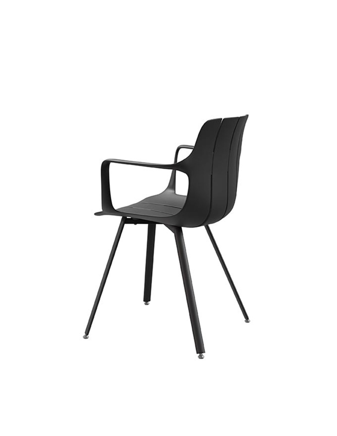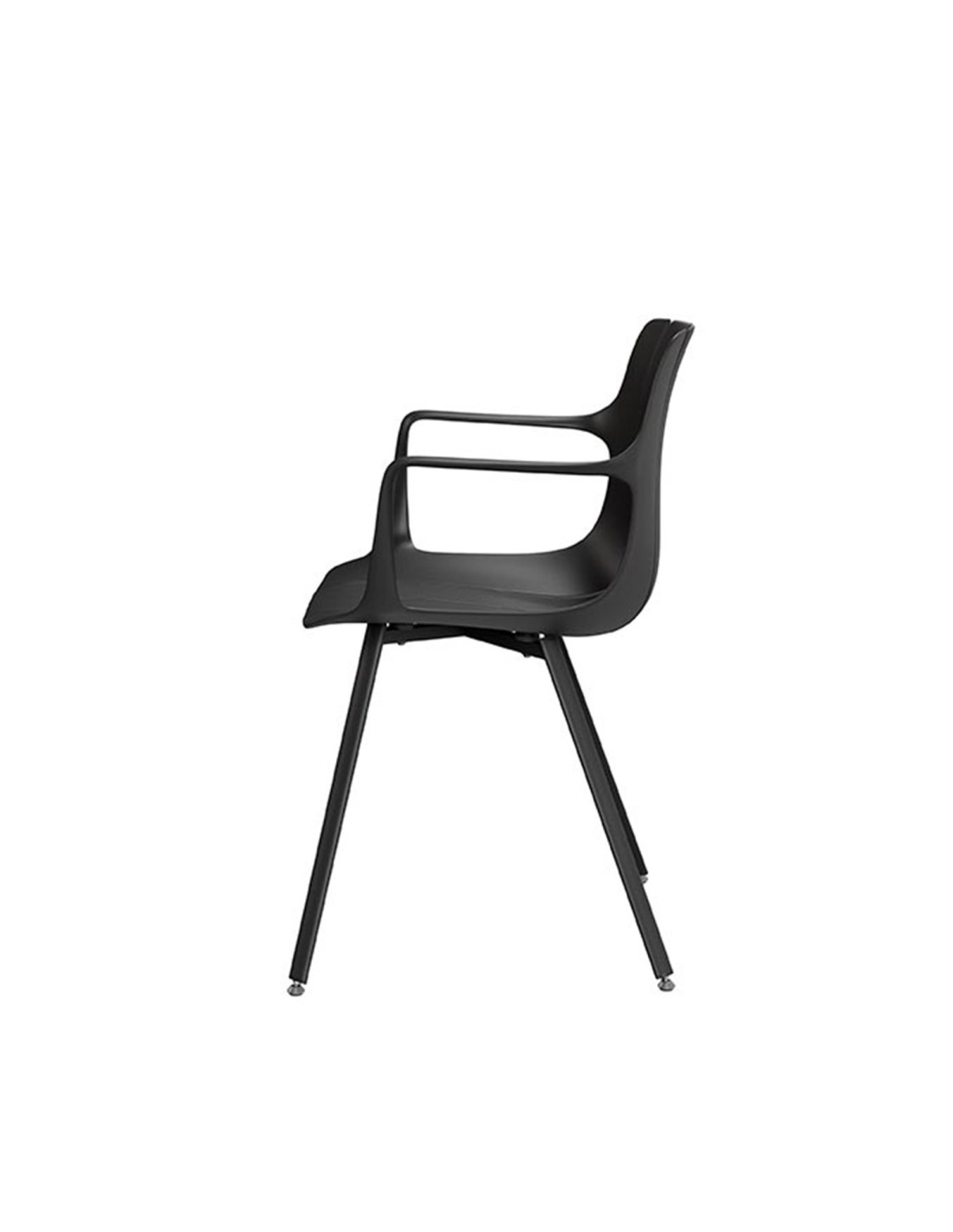 La silla OMAR está formada por un asiento, respaldo y brazos moldeados en una única pieza de polipropileno, ofreciendo un soporte ergonómico que se adapta a la perfección al cuerpo. Las patas metálicas completan su diseño minimalista y moderno, ideal para cualquier espacio.