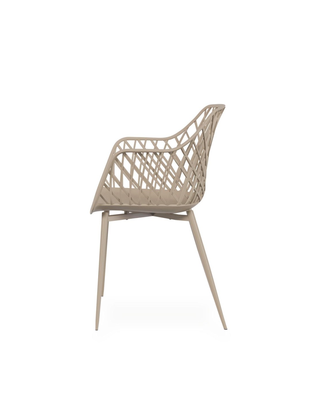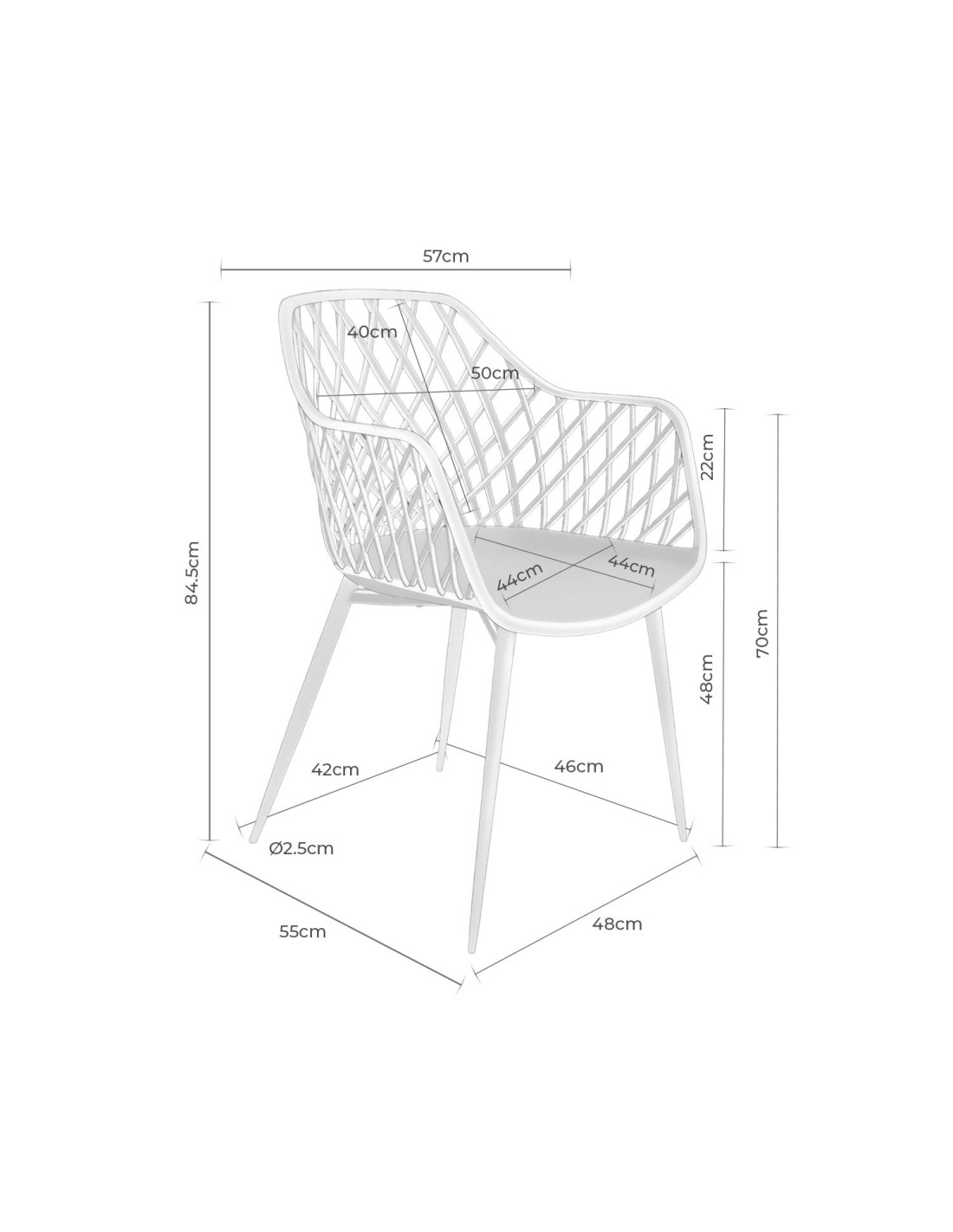 La silla CHARLES es una pieza única que combina el estilo industrial con un diseño vanguardista. Su respaldo y brazos entrelazados en forma de rejilla crean un patrón geométrico que añade un toque distintivo a cualquier espacio. Fabricada con polipropileno resistente y patas de metal lacado, esta silla es ideal para aquellos que buscan una pieza atemporal y versátil.