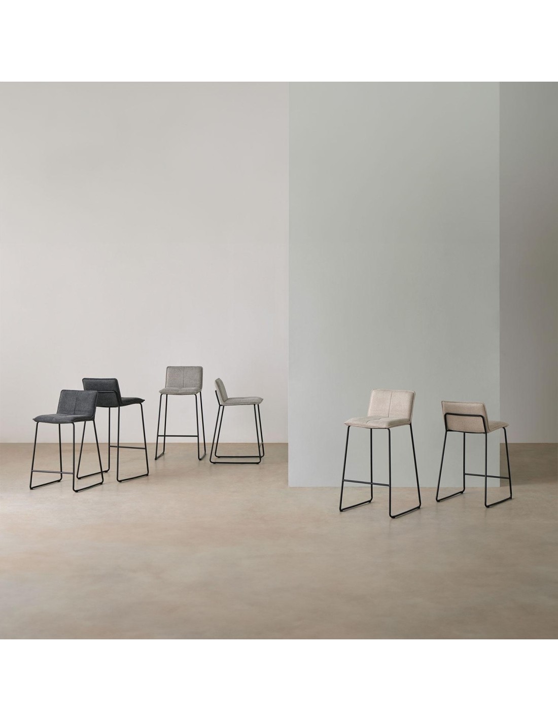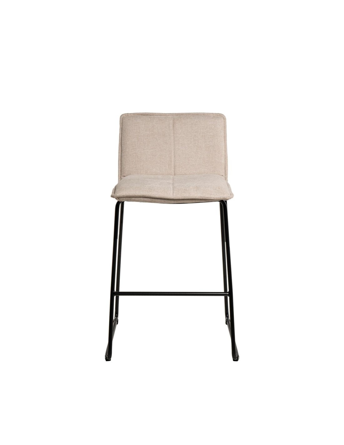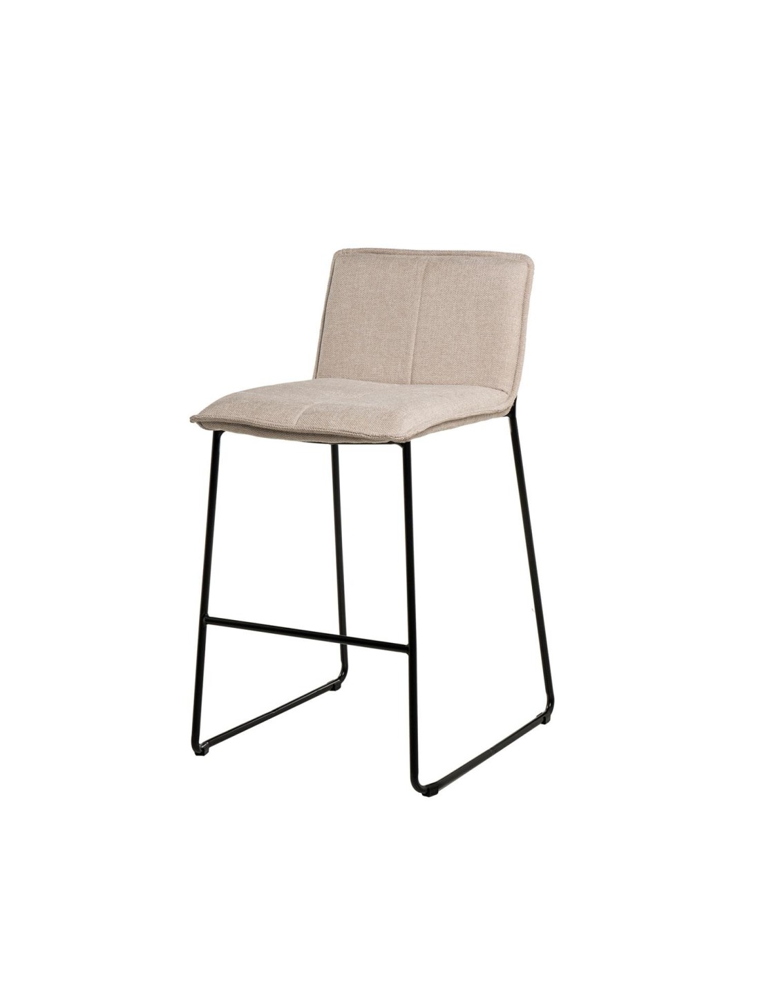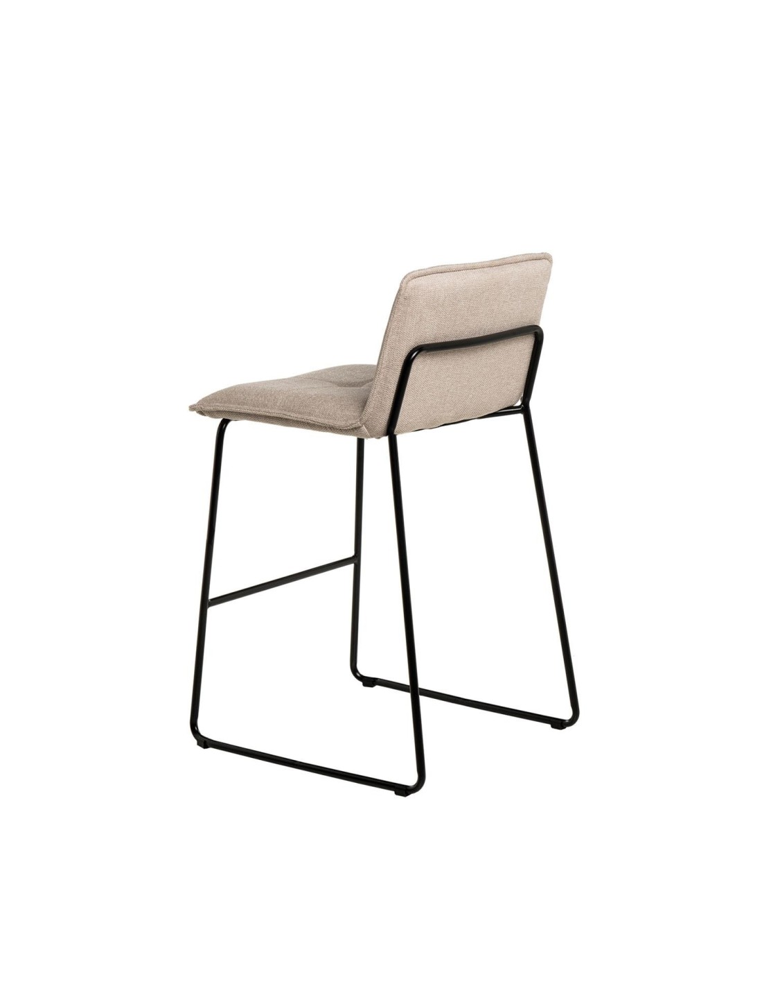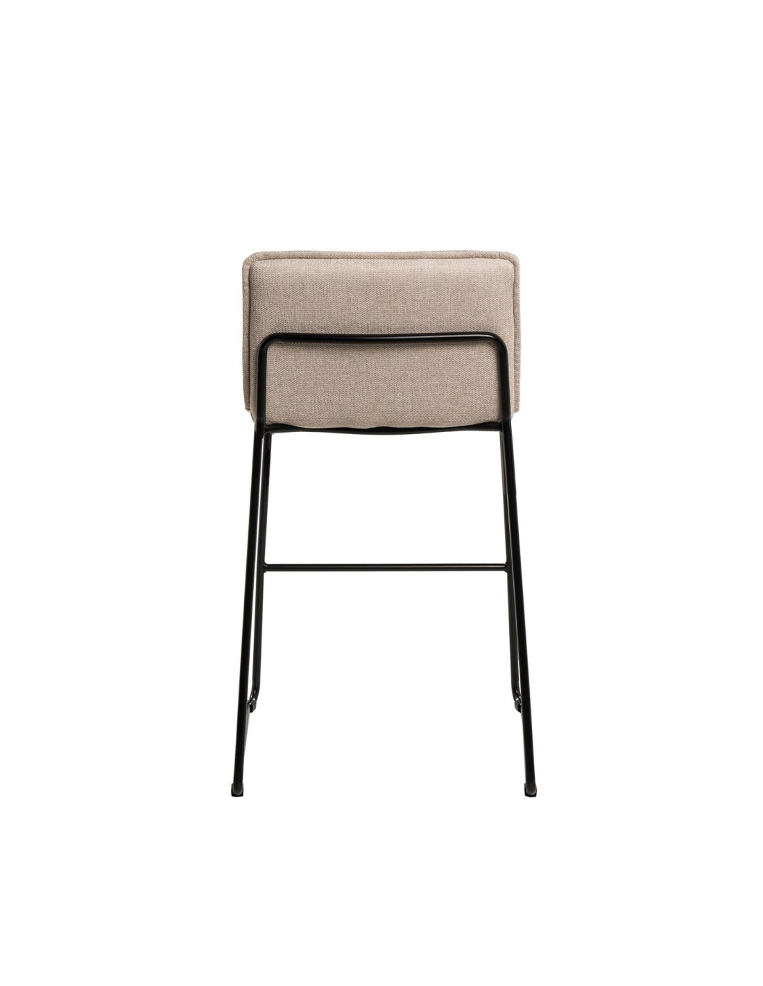 El taburete LARIOS destaca por su diseño minimalista y contemporáneo, ideal para complementar cualquier ambiente sin abrumar visualmente el entorno. El asiento y el respaldo están tapizados en una tela beige de fácil mantenimiento (100% poliéster), aportando un toque de elegancia y confort. La estructura de las patas, compuesta de metal en color negro, no solo proporciona estabilidad, sino que también añade un toque moderno y sofisticado. Además, cuenta con un reposapiés que ofrece equilibrio y comodidad adicionales.