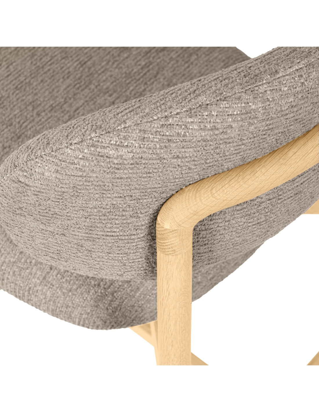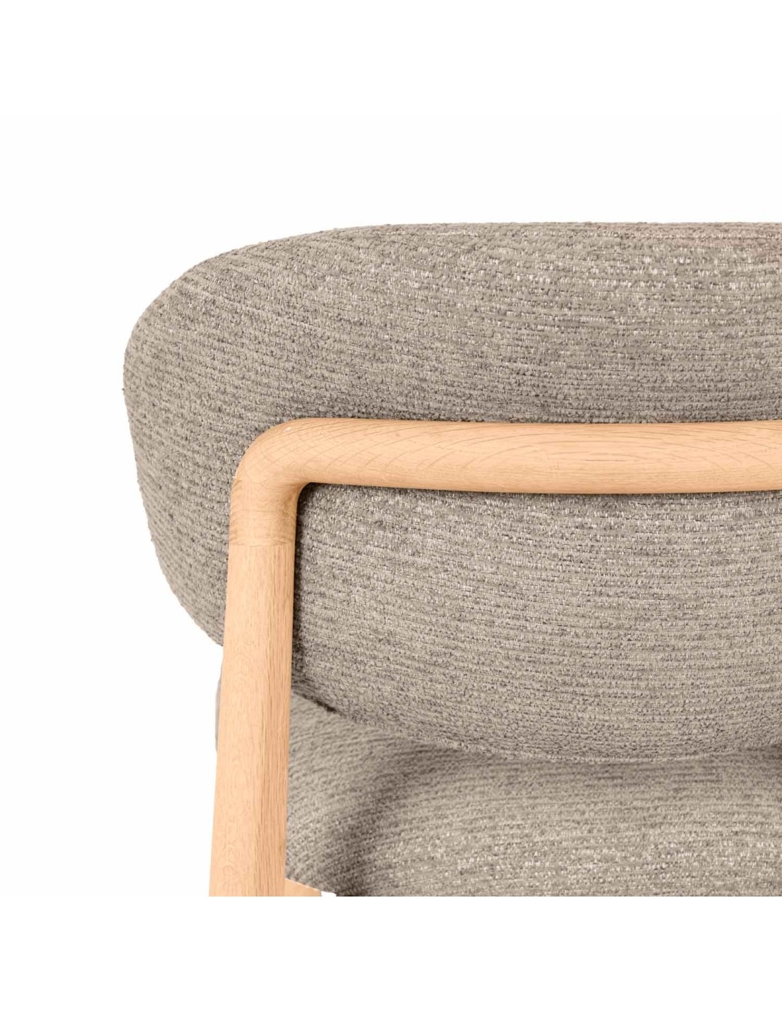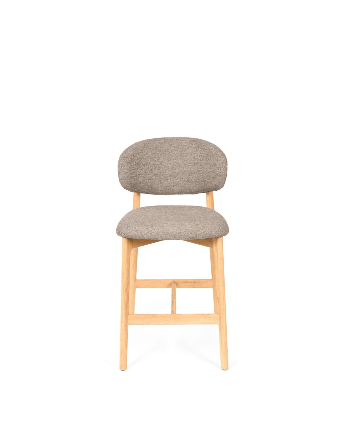El taburete DREA destaca por su equilibrio entre diseño, confort y estructura. Su base en madera de haya aporta solidez y calidez visual, mientras que las patas, ligeramente cónicas y unidas por travesaños en cruz, refuerzan la estabilidad y le otorgan un carácter artesanal muy cuidado. Está disponible en tonos beige, verde y taupe, y uno de sus mayores atractivos es la estructura trasera en madera vista, que enmarca el respaldo con elegancia y se convierte en un detalle distintivo cuando se observa desde cualquier ángulo. Este diseño, pensado para cocinas con isla, barras o espacios de hostelería, combina funcionalidad con una presencia decorativa que no pasa desapercibida.