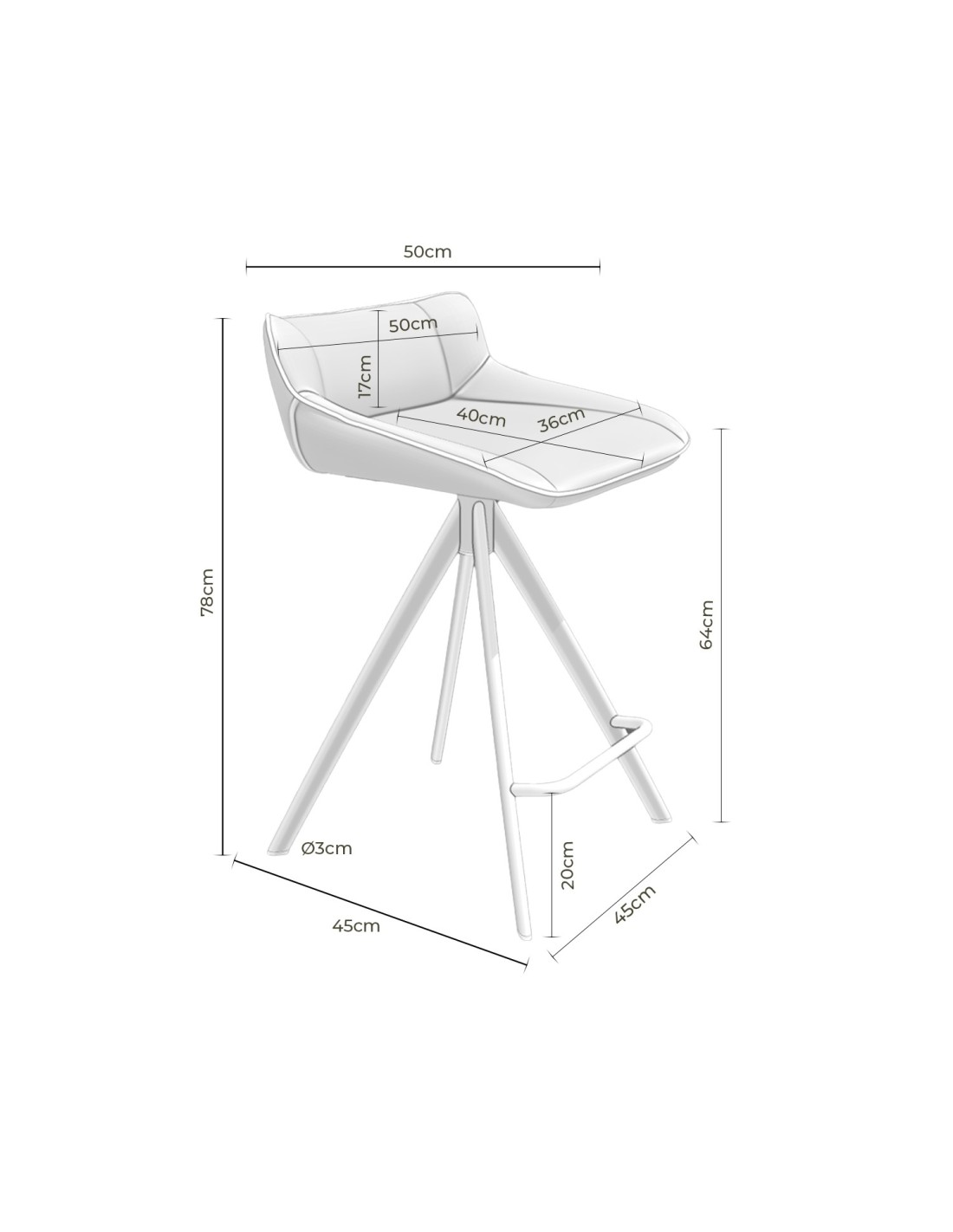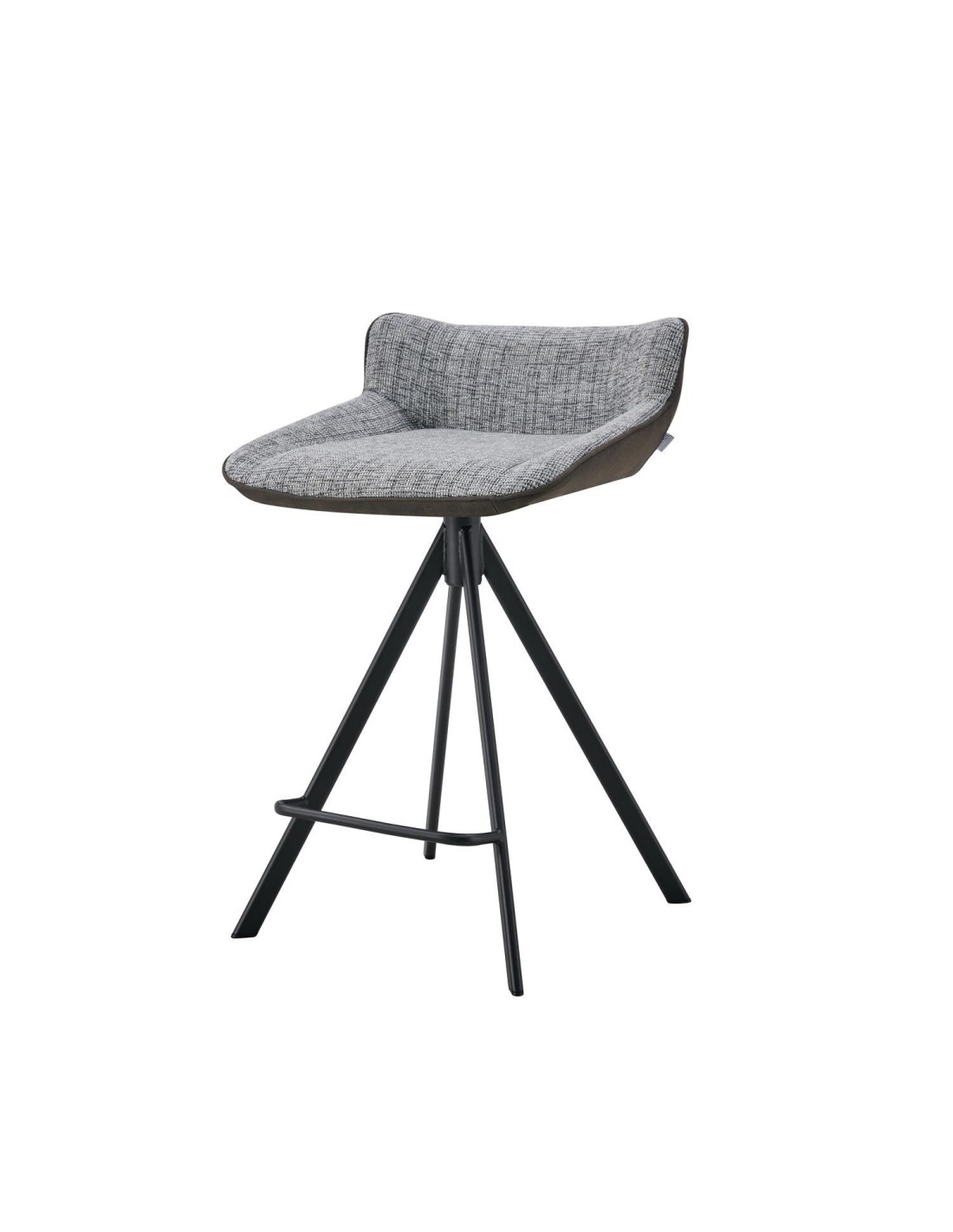 La combinación de dos estilos de tejidos diferentes del taburete alto ELTON le confiere un aspecto único. El patrón de espiga en color gris claro del tapizado aporta estilo, y junto con la ligera curvatura del respaldo, proporciona un aspecto moderno y elegante. La base está compuesta por patas de metal negro, inclinadas ligeramente hacia afuera para proporcionar una base firme. Además, el reposapiés añade un toque estético y refuerza la estructura, asegurando su durabilidad para el uso diario.