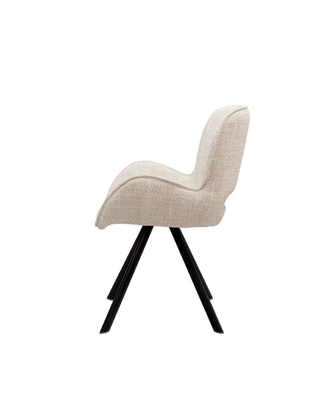 El respaldo y los reposabrazos curvados de la silla ALLIE le otorgan un diseño sofisticado y elegante. Su tapicería en tejido beige aporta un tono neutro y versátil, ideal para integrarse en diversos estilos de decoración interior. Además, esta silla está completamente acolchada, ofreciendo un alto nivel de confort para un uso prolongado.