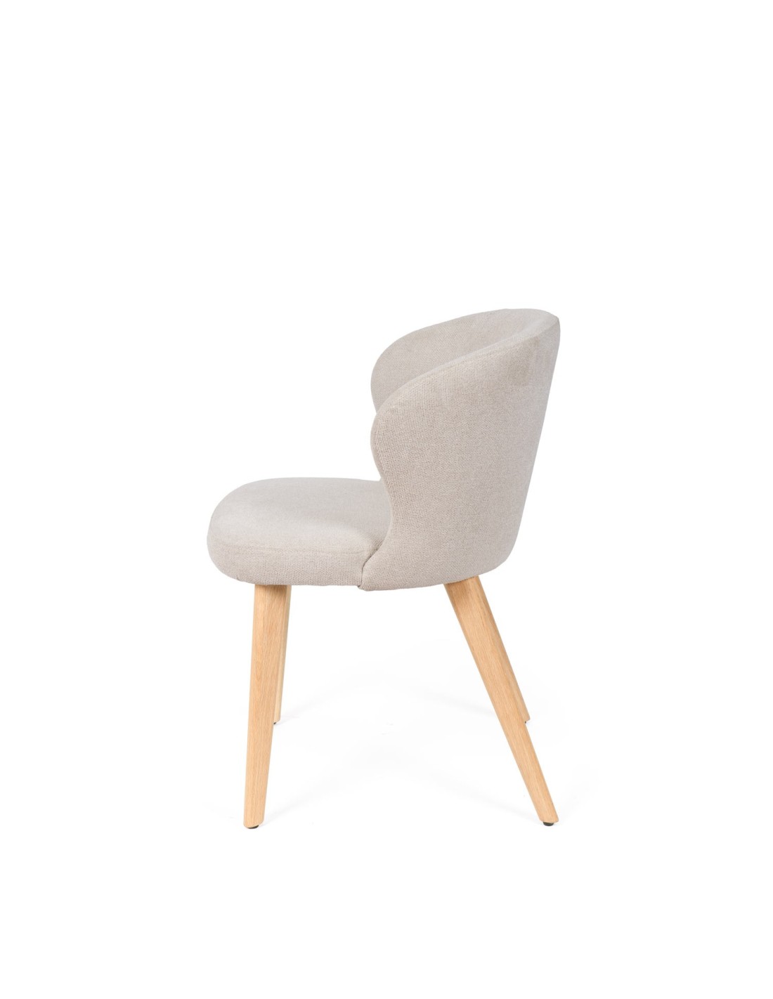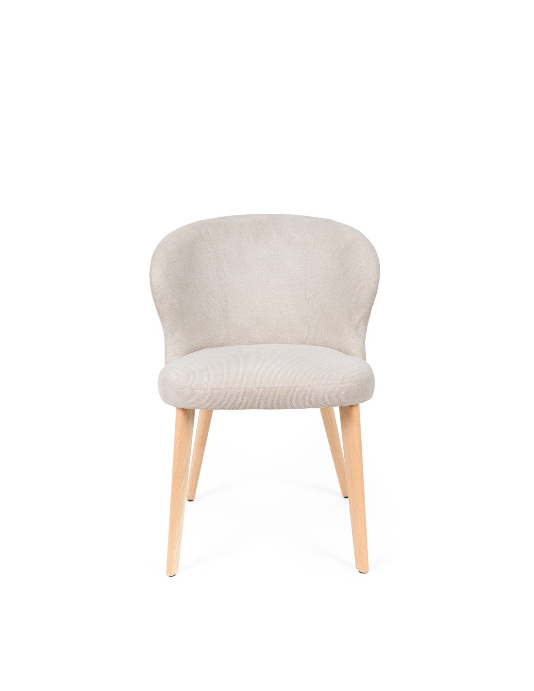 La silla TATE fusiona suavidad visual, funcionalidad y una elegancia discreta que se adapta con facilidad a una gran variedad de ambientes. Sus patas de madera de haya, ligeramente inclinadas, aportan ligereza visual y estabilidad, realzando su estilo contemporáneo con un sutil guiño a lo escandinavo. Disponible en tres tonalidades neutras —gris, beige y taupe—, su tapizado de textura agradable invita a combinarla con diferentes paletas decorativas, desde las más claras y naturales hasta entornos más sobrios o minimalistas. El respaldo, suavemente curvado y envolvente, abraza la espalda con comodidad sin recurrir a brazos voluminosos, lo que la convierte en una opción ideal para optimizar el espacio sin renunciar al confort. El asiento, generosamente acolchado, garantiza una experiencia placentera, tanto en comedores como en zonas de reunión, espacios de coworking o incluso en el canal HORECA.