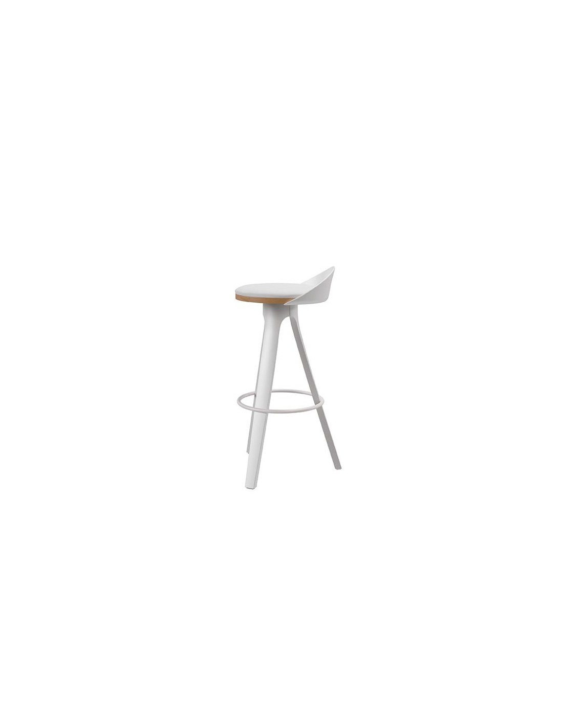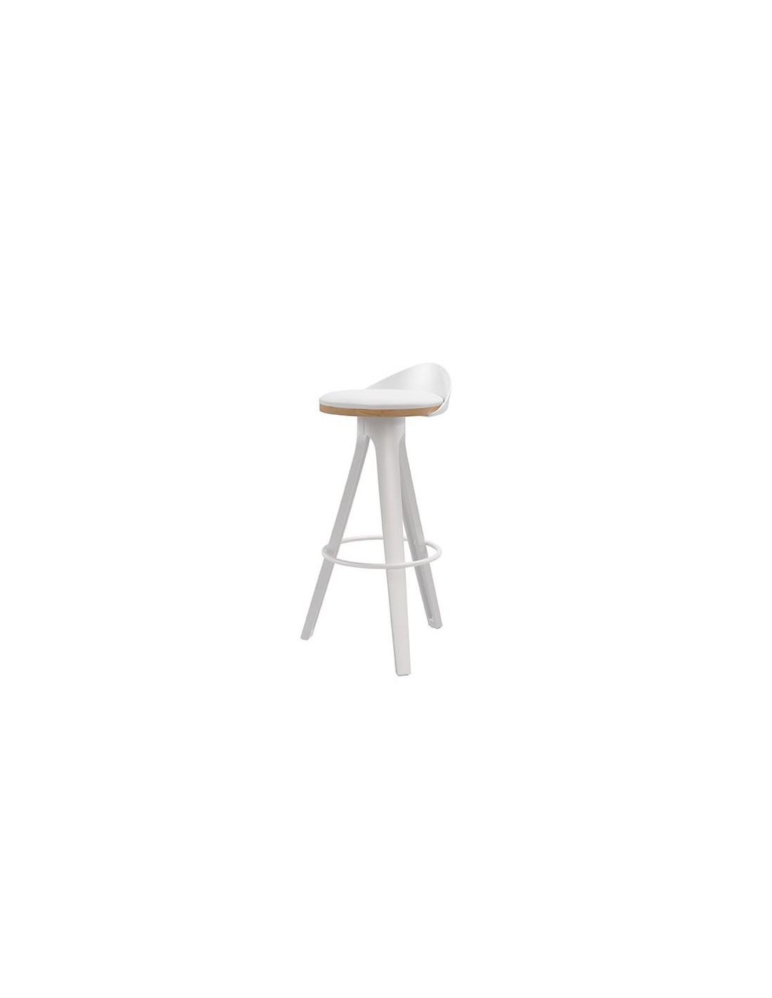 El taburete DENISE no solo destaca como un elegante artículo de diseño para cualquier ambiente, sino que también ofrece un confort excepcional gracias a su estructura ergonómica. El asiento, fabricado en madera y acolchado en color blanco, proporciona una comodidad superior, mientras que el respaldo añade un soporte adicional. Además, cuenta con un reposapiés circular y patas de polipropileno en color blanco cuya combinación con el tono natural de la madera hace que este taburete sea visualmente atractivo y versátil, adaptándose a diversos estilos de interiores.