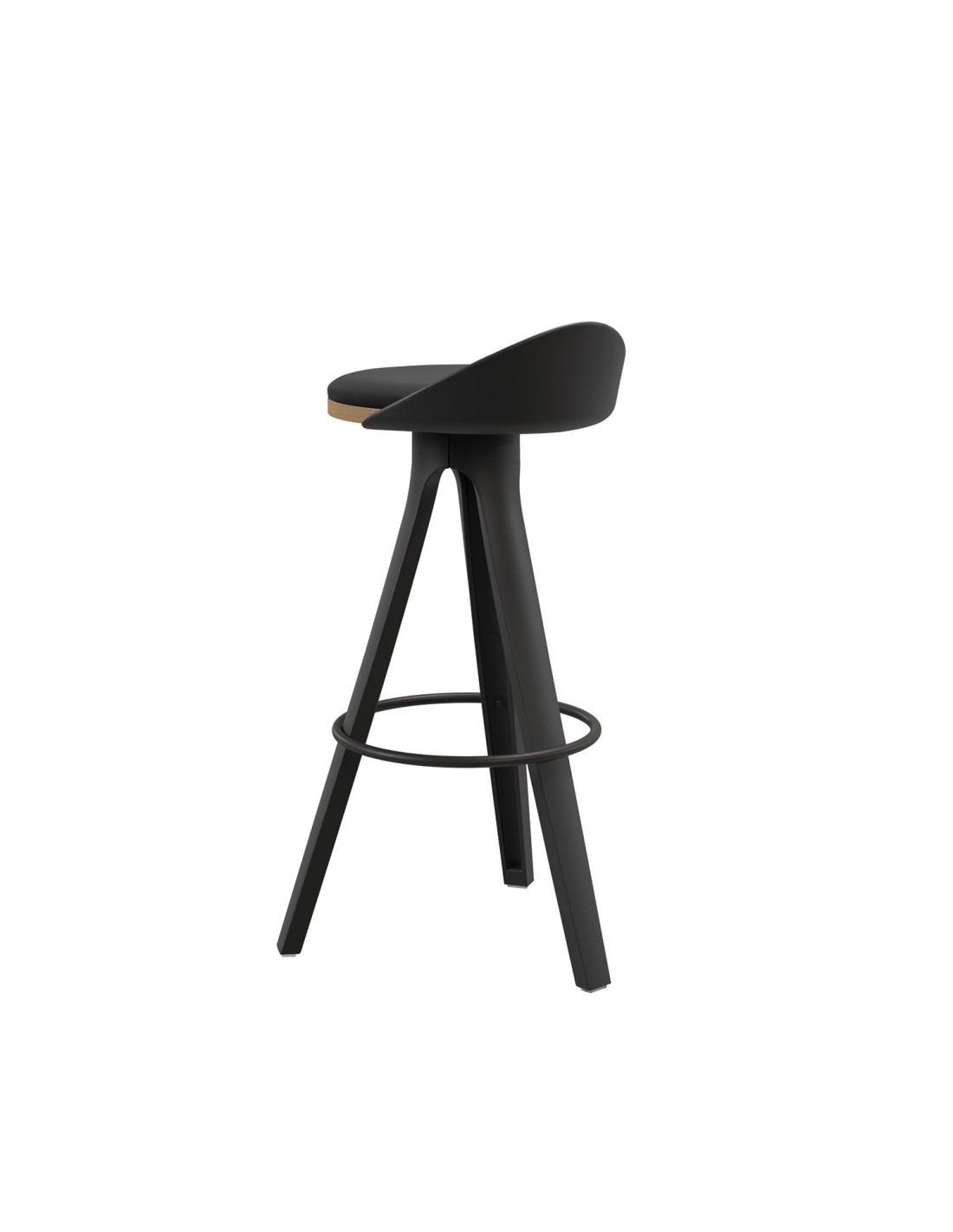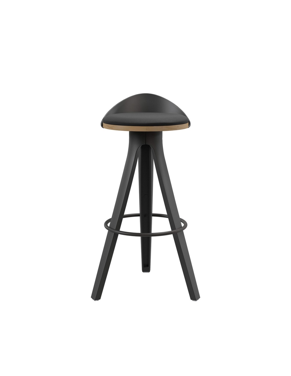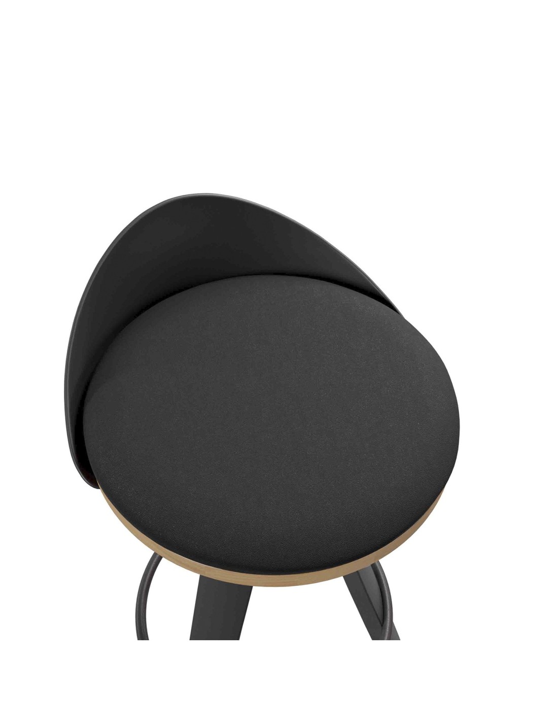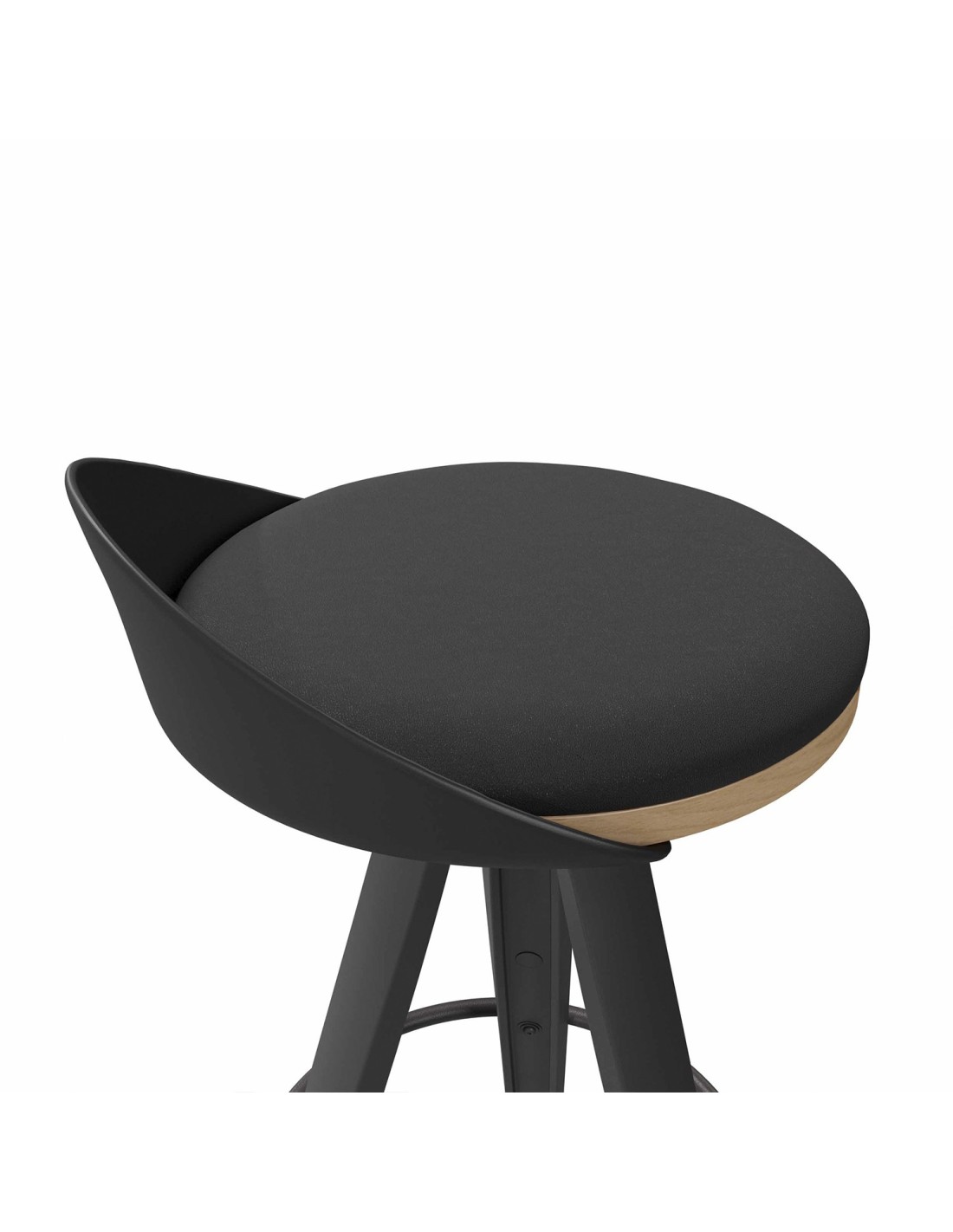 El taburete DENISE no solo destaca como un elegante artículo de diseño para cualquier ambiente, sino que también ofrece un confort excepcional gracias a su estructura ergonómica. El asiento, fabricado en madera y acolchado en color negro, proporciona una comodidad superior, mientras que el respaldo añade un soporte adicional. Además, cuenta con un reposapiés circular y patas de polipropileno en color negro cuya combinación con el tono natural de la madera hace que este taburete sea visualmente atractivo y versátil, adaptándose a diversos estilos de interiores.