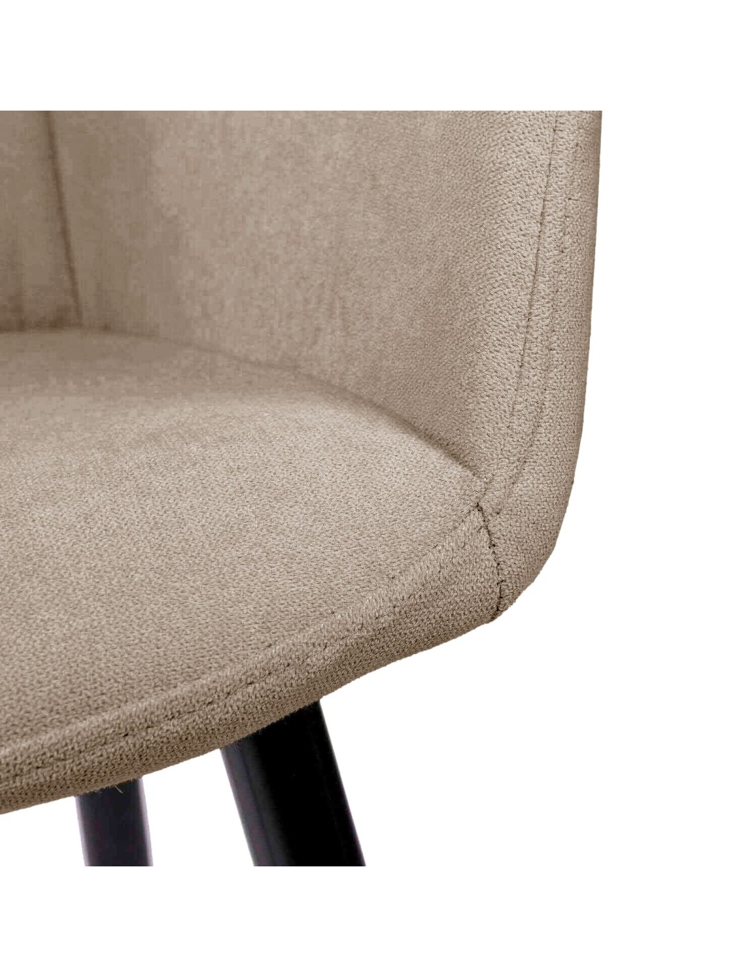La silla LIHME destaca por su diseño contemporáneo y su gran comodidad. Su respaldo curvado con costuras verticales realza su estilo moderno. Tanto el asiento como el respaldo están acolchados y tapizados en un tejido taupe, ofreciendo una combinación perfecta de confort y estilo. Las patas, delgadas y anguladas, están acabadas en color negro, proporcionando un contraste llamativo con la tapicería clara y asegurando una estabilidad óptima. Esta silla es una adición atractiva para cualquier espacio interior moderno, ya sea en el comedor o en la sala de estar, ofreciendo tanto atractivo estético como funcionalidad.