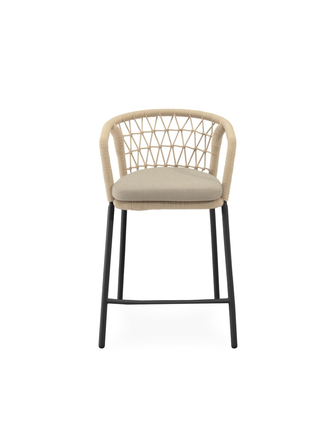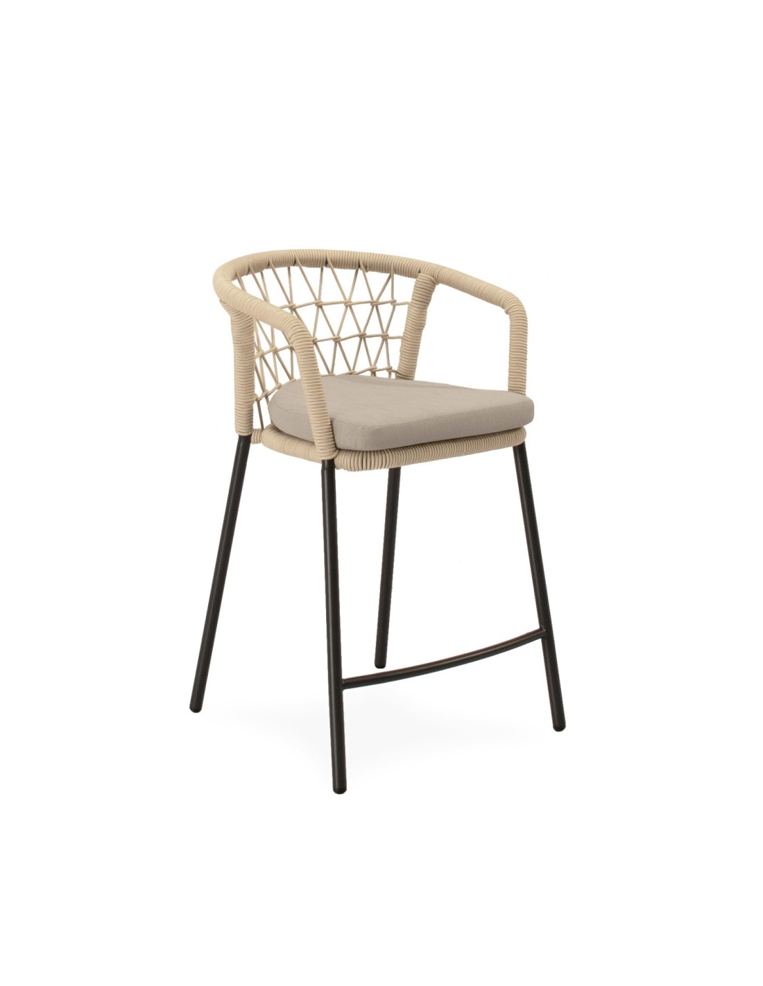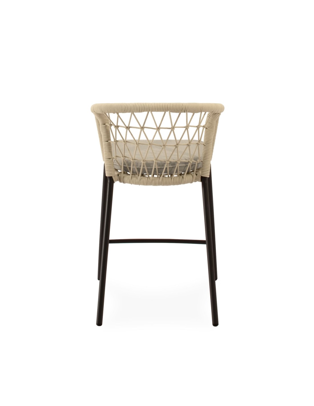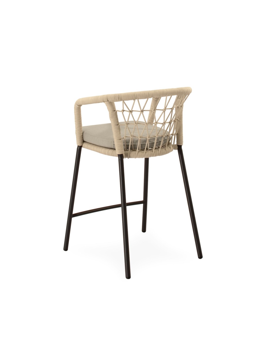 El taburete ØRDING combina elegancia y comodidad con un diseño pensado para destacar. Su respaldo curvo, envuelto en cuerda entrelazada, aporta un sutil toque decorativo mientras proporciona un soporte ergonómico que envuelve suavemente la espalda. Las patas de acero cuidadosamente tratado para uso prolongado en exteriores, robustas y ligeramente inclinadas, garantizan estabilidad y un contraste moderno con el asiento acolchado en poliéster. ØRDING es ideal para crear rincones sofisticados en terrazas, barras exteriores o zonas de comedor con un aire contemporáneo.