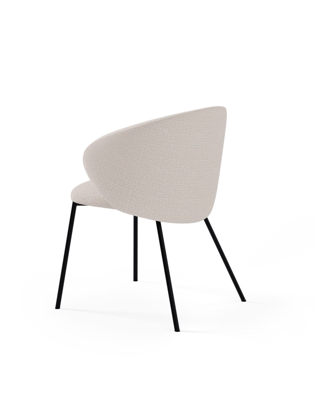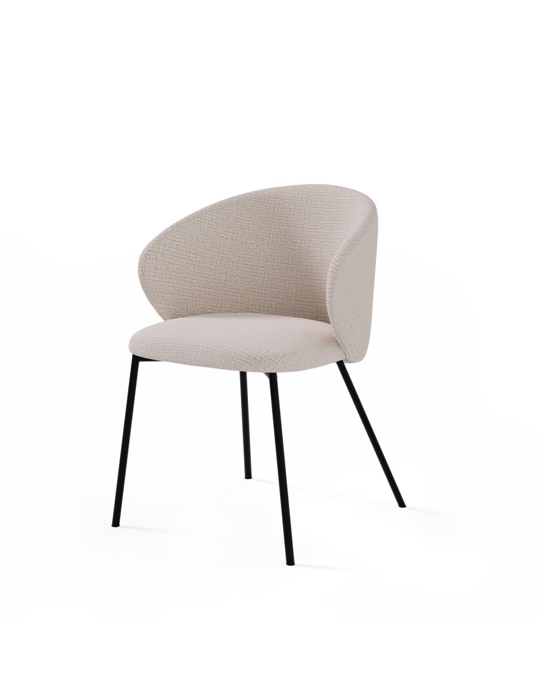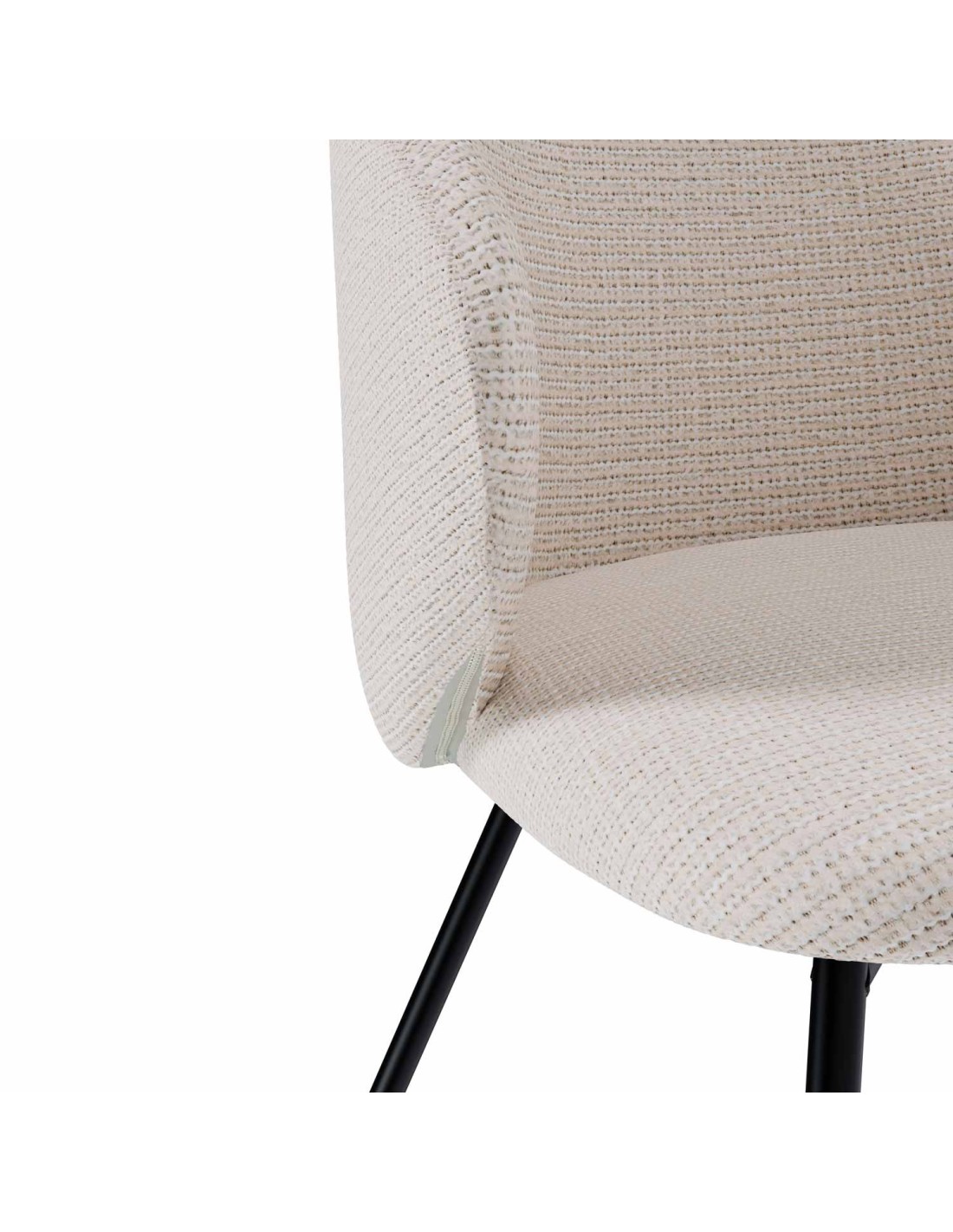 La silla ROSLEV destaca por su diseño vintage original, confeccionada en un elegante tejido beige. Esta pieza única combina respaldo y reposabrazos en una estructura ancha que envuelve al usuario, proporcionando un soporte óptimo. Completamente acolchada, la silla ROSLEV garantiza una comodidad excepcional, permitiendo su uso prolongado sin perder confort. Las patas metálicas en color negro, ligeramente abiertas, no solo aseguran estabilidad, sino que también aportan un toque chic y sofisticado, ideal para ambientes elegantes y modernos.
