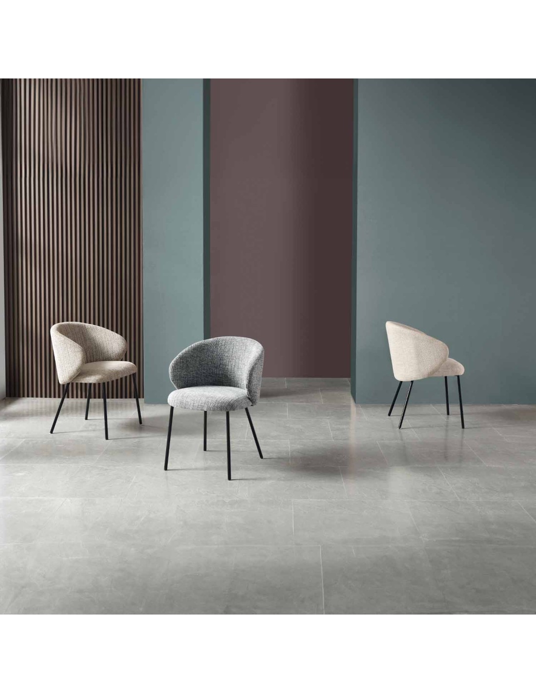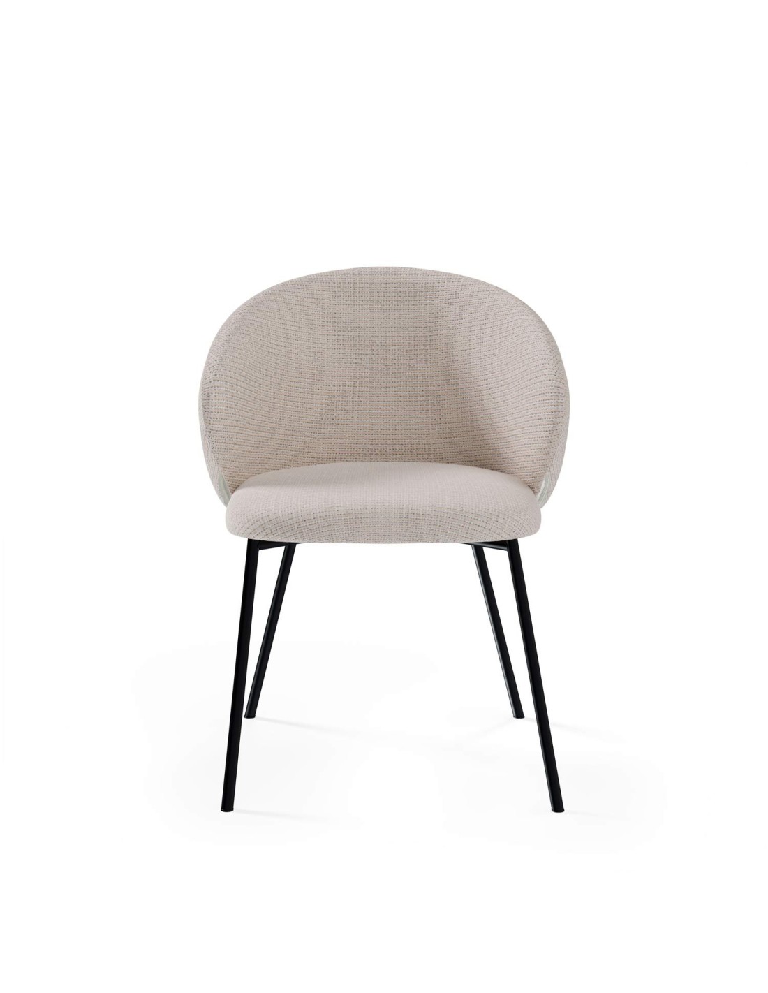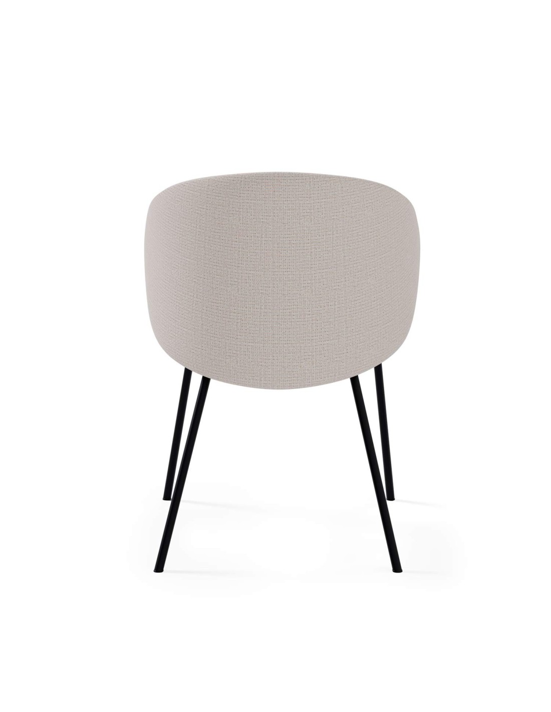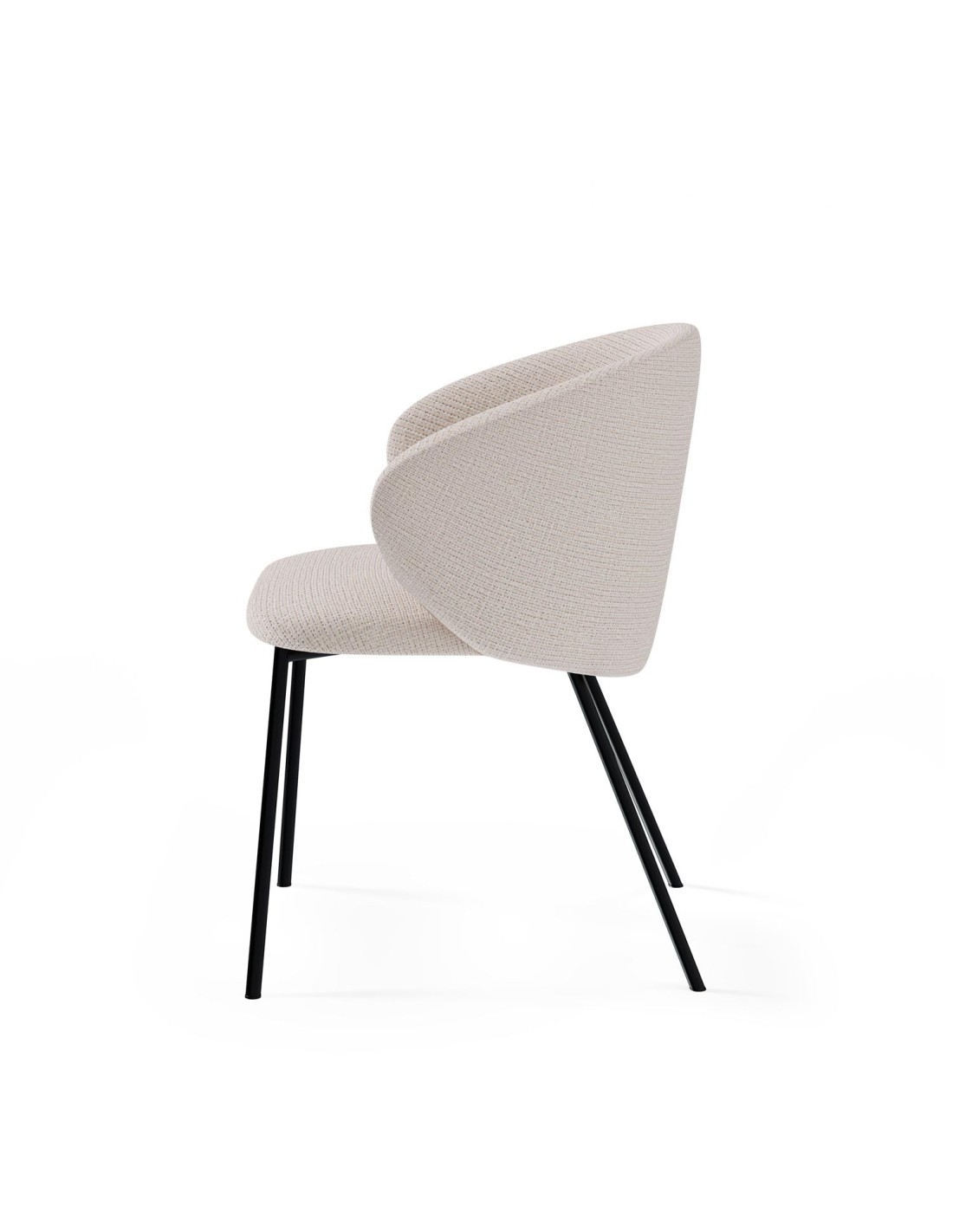 La silla ROSLEV destaca por su diseño vintage original, confeccionada en un elegante tejido beige. Esta pieza única combina respaldo y reposabrazos en una estructura ancha que envuelve al usuario, proporcionando un soporte óptimo. Completamente acolchada, la silla ROSLEV garantiza una comodidad excepcional, permitiendo su uso prolongado sin perder confort. Las patas metálicas en color negro, ligeramente abiertas, no solo aseguran estabilidad, sino que también aportan un toque chic y sofisticado, ideal para ambientes elegantes y modernos.