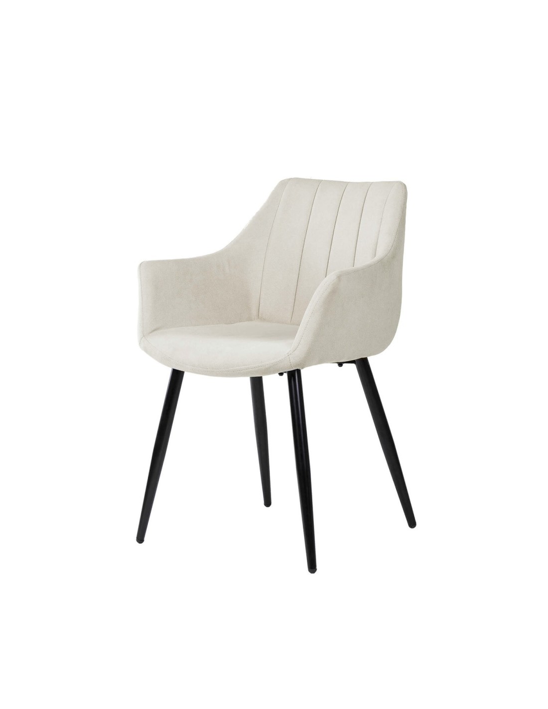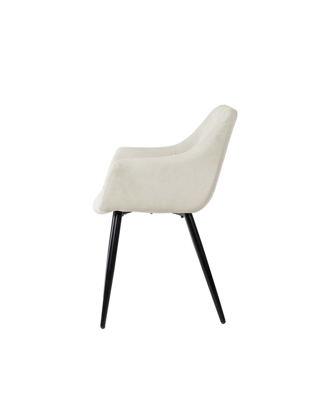 La silla LIHME destaca por su diseño contemporáneo y su gran comodidad. Su respaldo curvado con costuras verticales realza su estilo moderno. Tanto el asiento como el respaldo están acolchados y tapizados en un tejido beige, ofreciendo una combinación perfecta de confort y estilo. Las patas, delgadas y anguladas, están acabadas en color negro, proporcionando un contraste llamativo con la tapicería clara y asegurando una estabilidad óptima. Esta silla es una adición atractiva para cualquier espacio interior moderno, ya sea en el comedor o en la sala de estar, ofreciendo tanto atractivo estético como funcionalidad.