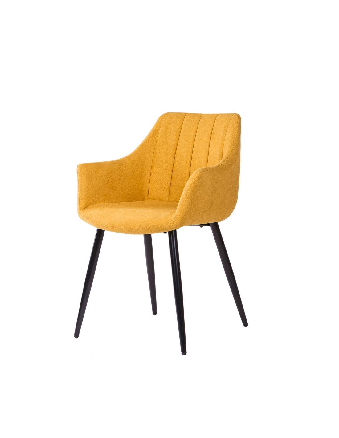 La silla LIHME destaca por su diseño contemporáneo y su gran comodidad. Su respaldo curvado con costuras verticales realza su estilo moderno. Tanto el asiento como el respaldo están acolchados y tapizados en un tejido mostaza, ofreciendo una combinación perfecta de confort y estilo. Las patas, delgadas y anguladas, están acabadas en color negro, proporcionando un contraste llamativo con la tapicería clara y asegurando una estabilidad óptima. Esta silla es una adición atractiva para cualquier espacio interior moderno, ya sea en el comedor o en la sala de estar, ofreciendo tanto atractivo estético como funcionalidad.