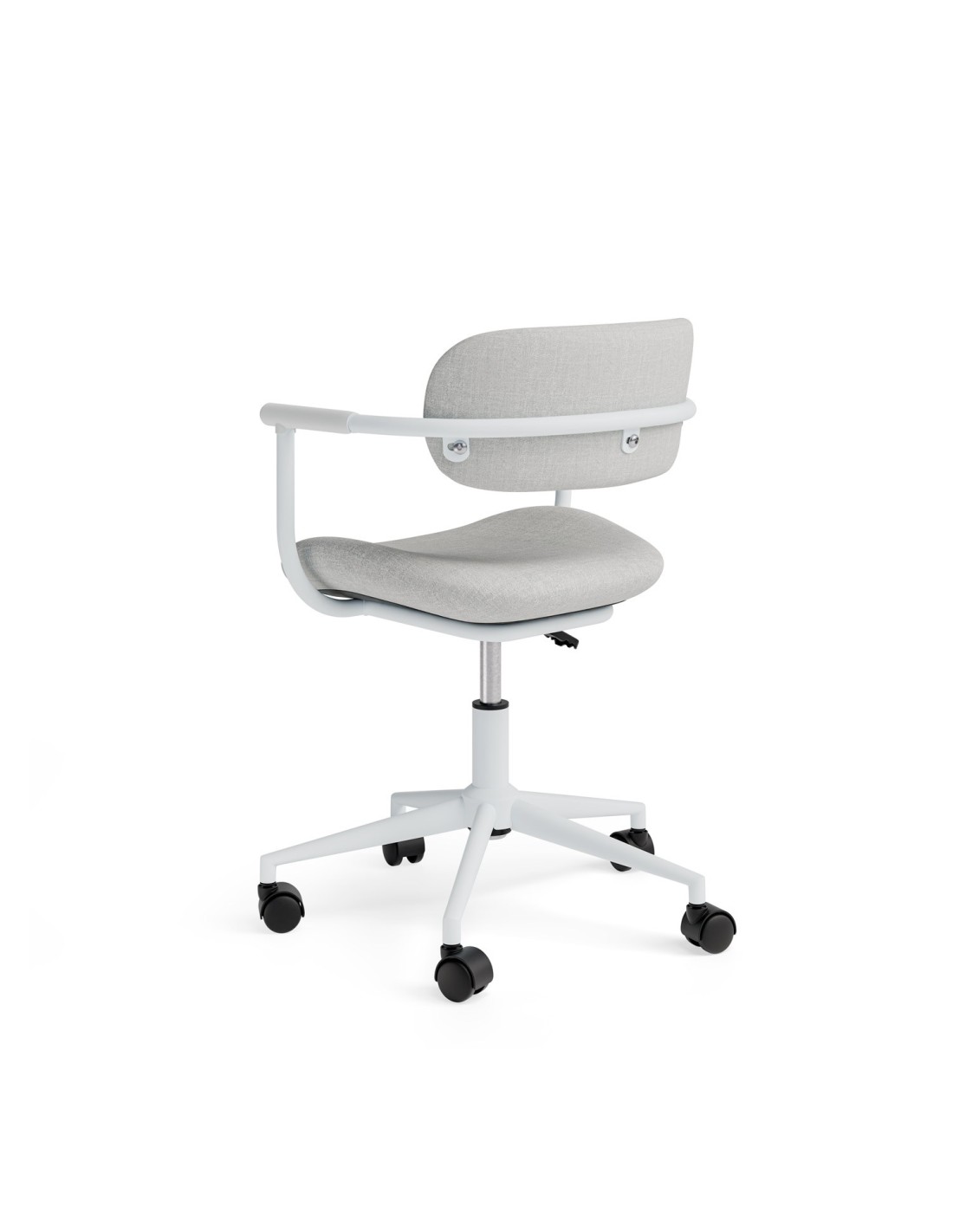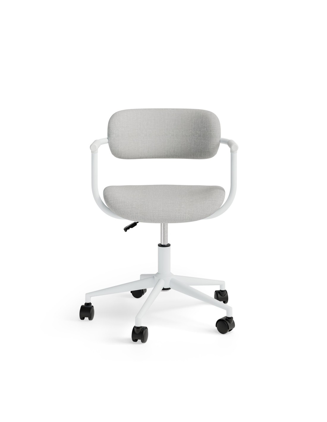 Minimalismo y comodidad se fusionan en la silla de oficina GOTHENBURG, una propuesta moderna y funcional que destaca por su diseño ligero y elegante, ideal para espacios de trabajo que buscan estilo y practicidad. Su estructura minimalista en color blanco se complementa con un tapizado disponible en gris, mostaza o menta, colores que aportan una estética limpia, contemporánea y adaptable a diferentes estilos de decoración. Su forma curvilínea está diseñada para ajustarse de manera natural a la espalda, ofreciendo un soporte ergonómico que prioriza la comodidad durante largas horas de uso. Equipada con un mecanismo de giro 360º y un sistema de ajuste de altura mediante pistón de gas, la silla GOTHENBURG se adapta fácilmente a las necesidades y preferencias de cada usuario, garantizando funcionalidad y versatilidad en cualquier entorno.