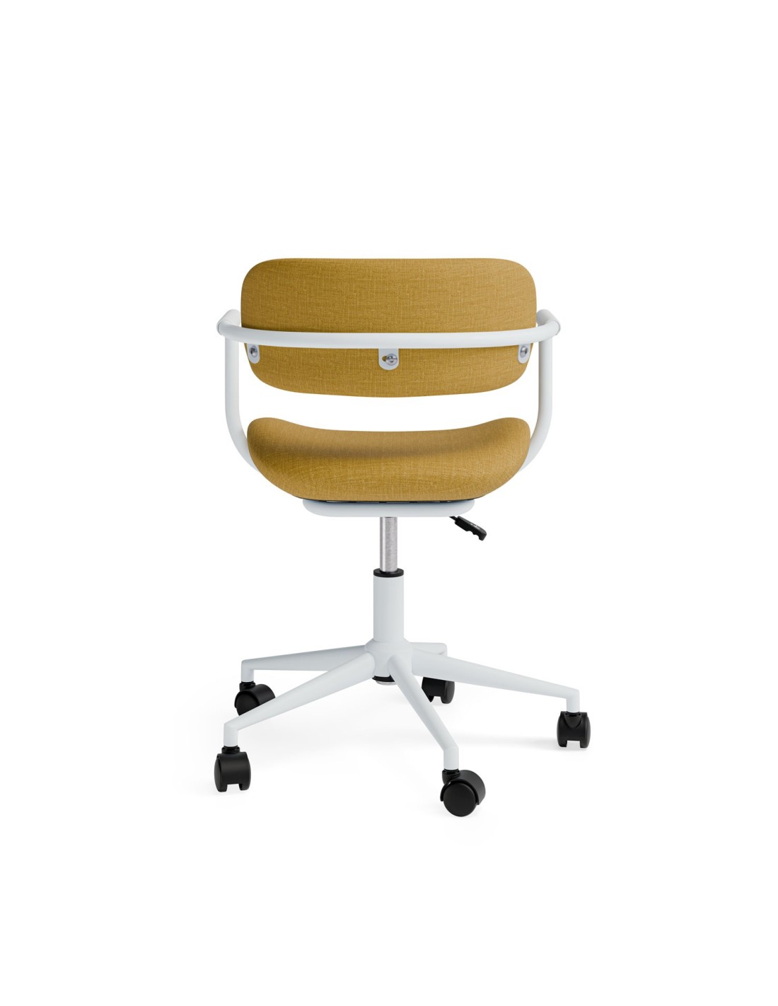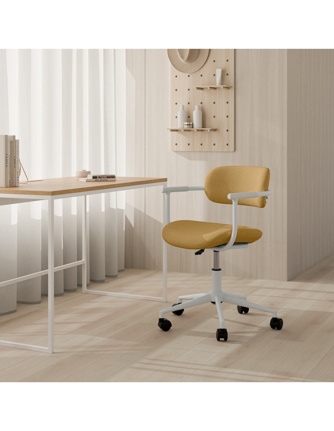 Minimalismo y comodidad se fusionan en la silla de oficina GOTHENBURG, una propuesta moderna y funcional que destaca por su diseño ligero y elegante, ideal para espacios de trabajo que buscan estilo y practicidad. Su estructura minimalista en color blanco se complementa con un tapizado disponible en gris, mostaza o menta, colores que aportan una estética limpia, contemporánea y adaptable a diferentes estilos de decoración. Su forma curvilínea está diseñada para ajustarse de manera natural a la espalda, ofreciendo un soporte ergonómico que prioriza la comodidad durante largas horas de uso. Equipada con un mecanismo de giro 360º y un sistema de ajuste de altura mediante pistón de gas, la silla GOTHENBURG se adapta fácilmente a las necesidades y preferencias de cada usuario, garantizando funcionalidad y versatilidad en cualquier entorno.