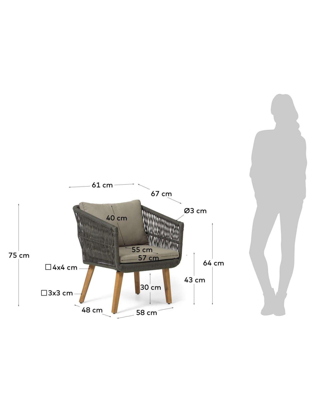 Set Inti de sofá 2 plazas y 2 butacas cuerda verde FSC 100% - Kave Home