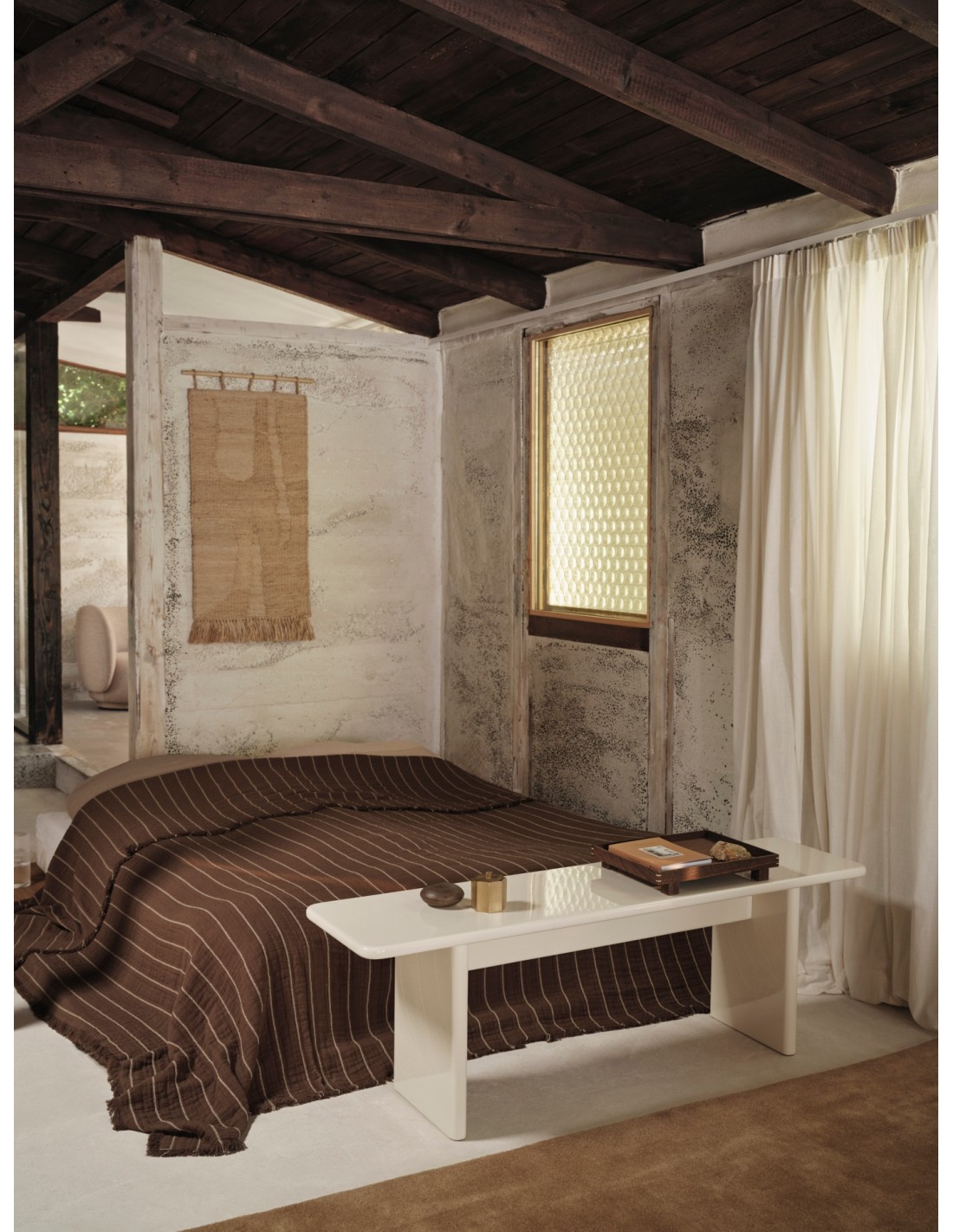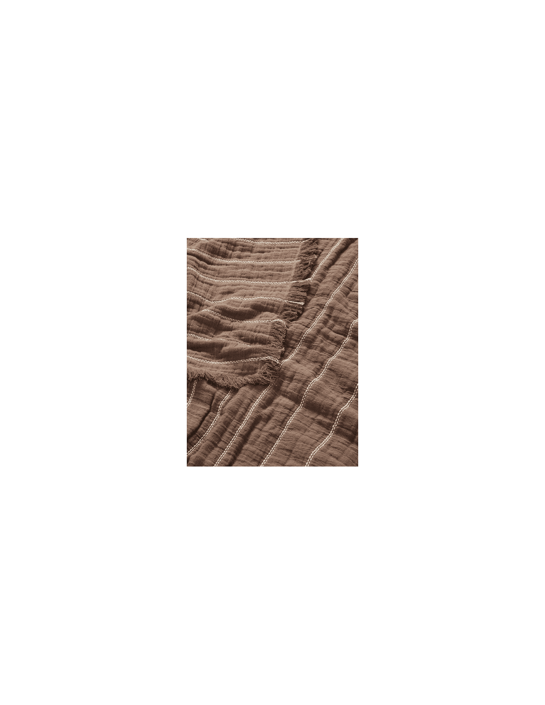 Hecho de 100% algodón orgánico certificado por GOTS, el cubrecama Aires es una adición informal pero sofisticada a tu dormitorio o sala de estar. Hábilmente construido con una técnica de tejido doble, interconecta dos capas de tela distintas durante el proceso de tejido para crear una textura sutilmente fruncida e irregular. Este diseño ofrece un tacto suave y aireado, a la vez que proporciona calidez gracias a su tejido de doble capa. Una franja de contraste finamente tejida y bordes con flecos delicados añaden un interés visual adicional. Úsalo como cubrecama o colócalo sobre un sofá para crear un refugio acogedor.