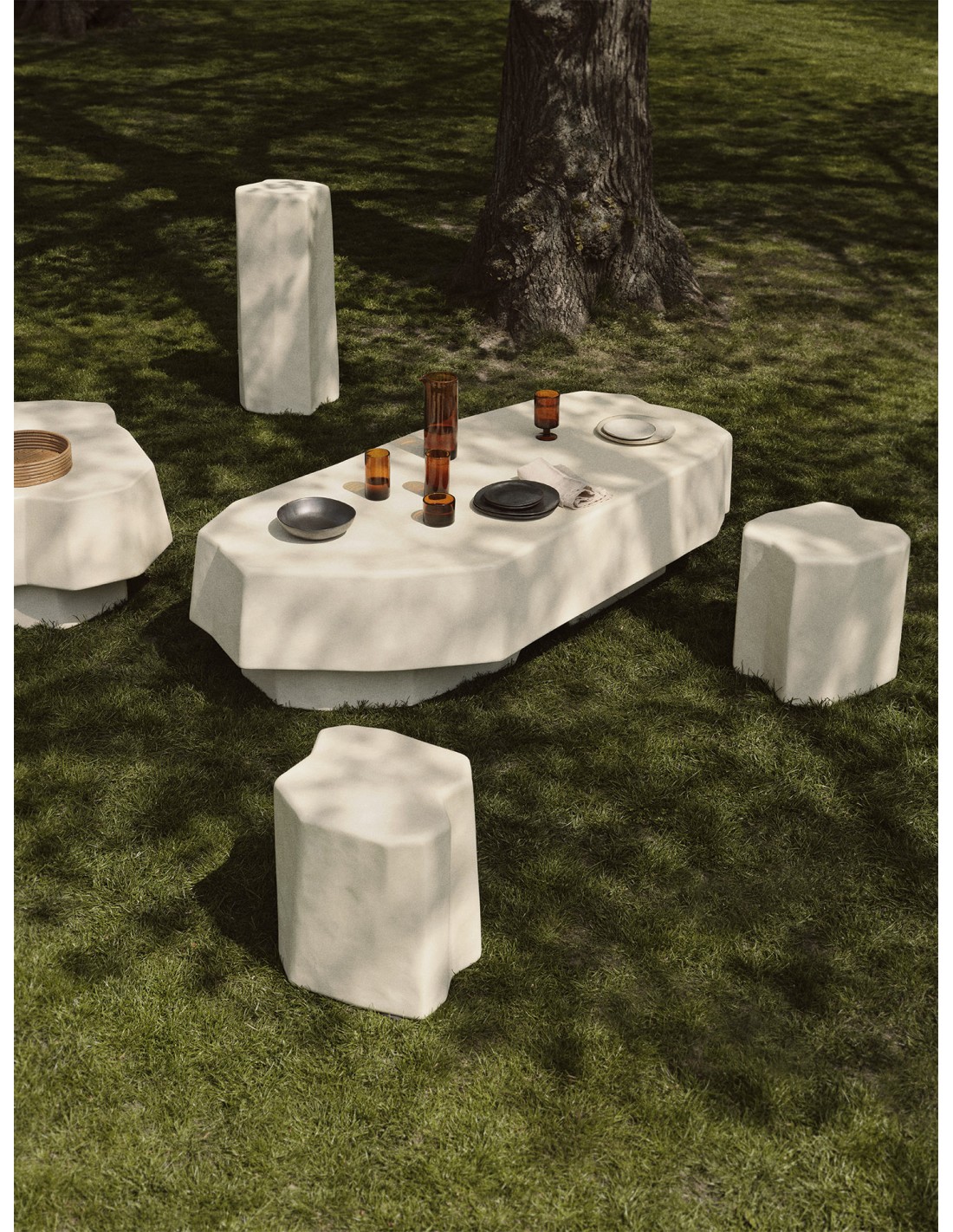Inspirada en las singulares formaciones rocosas volcánicas de la antigua isla de Staffa, en Escocia, la colección Staffa presenta una serie de audaces piezas de mobiliario. Rindiendo homenaje a su homónimo, que significa pilar en nórdico antiguo, cada pieza está fabricada íntegramente en hormigón reforzado con fibra de vidrio, mediante un innovador proceso de fundición que le confiere una forma rugosa e irregular que evoca bloques de piedra tallada. Apta tanto para interior como para exterior, la mesa auxiliar Staffa es una pieza fascinante que difumina la línea entre arte y funcionalidad. Úsala como pedestal para realzar tu lámpara u obra de arte favorita y observa cómo, de forma natural, se robará todas las miradas.