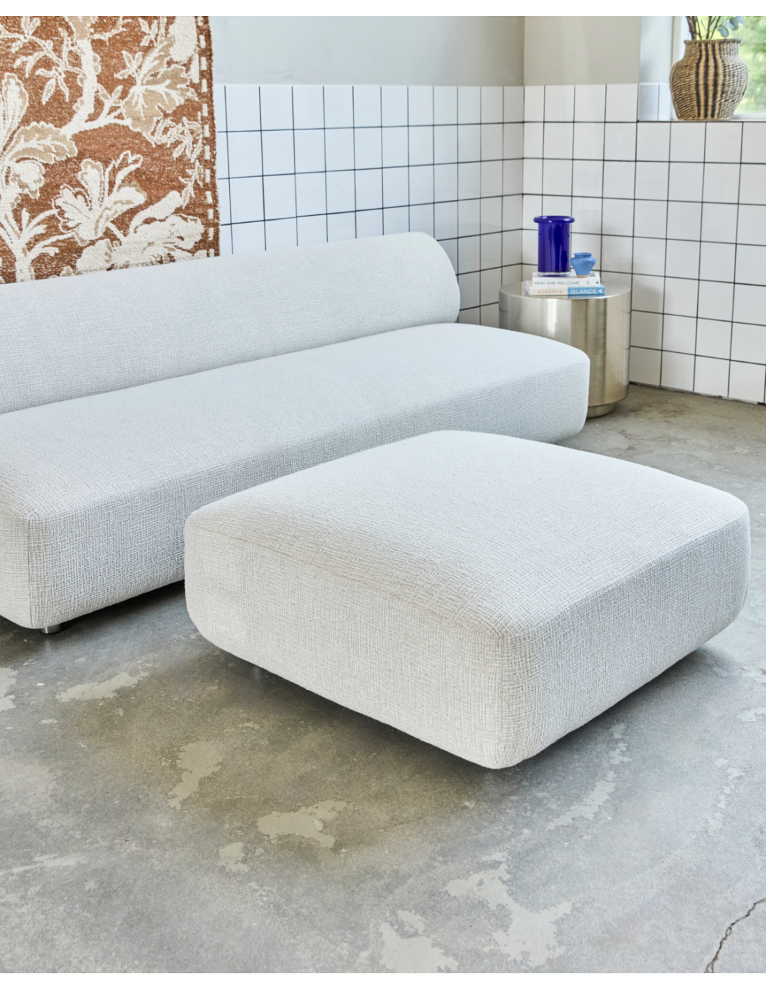 Puf mullido con un diseño geométrico de formas redondeadas y un agradable tapizado con textura. El puf HDFeel es perfecto como reposapiés, asiento extra o como un suave elemento decorativo a juego con la serie de sofás HDFeel.- Diseño geométrico redondeado.- Tapizado en algodón gris claro.. Requiere montaje. Limpiar con un paño húmedo para su mantenimiento.