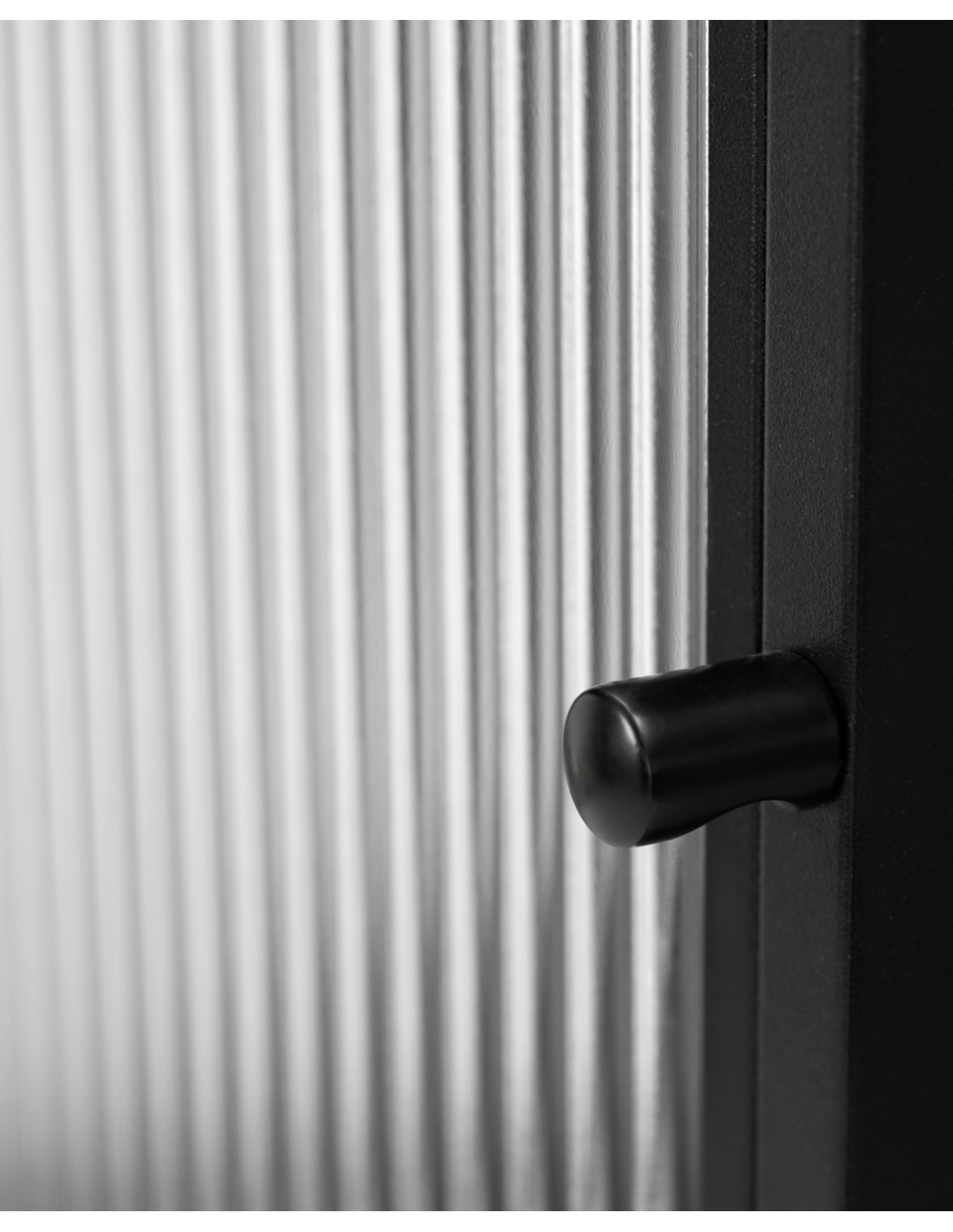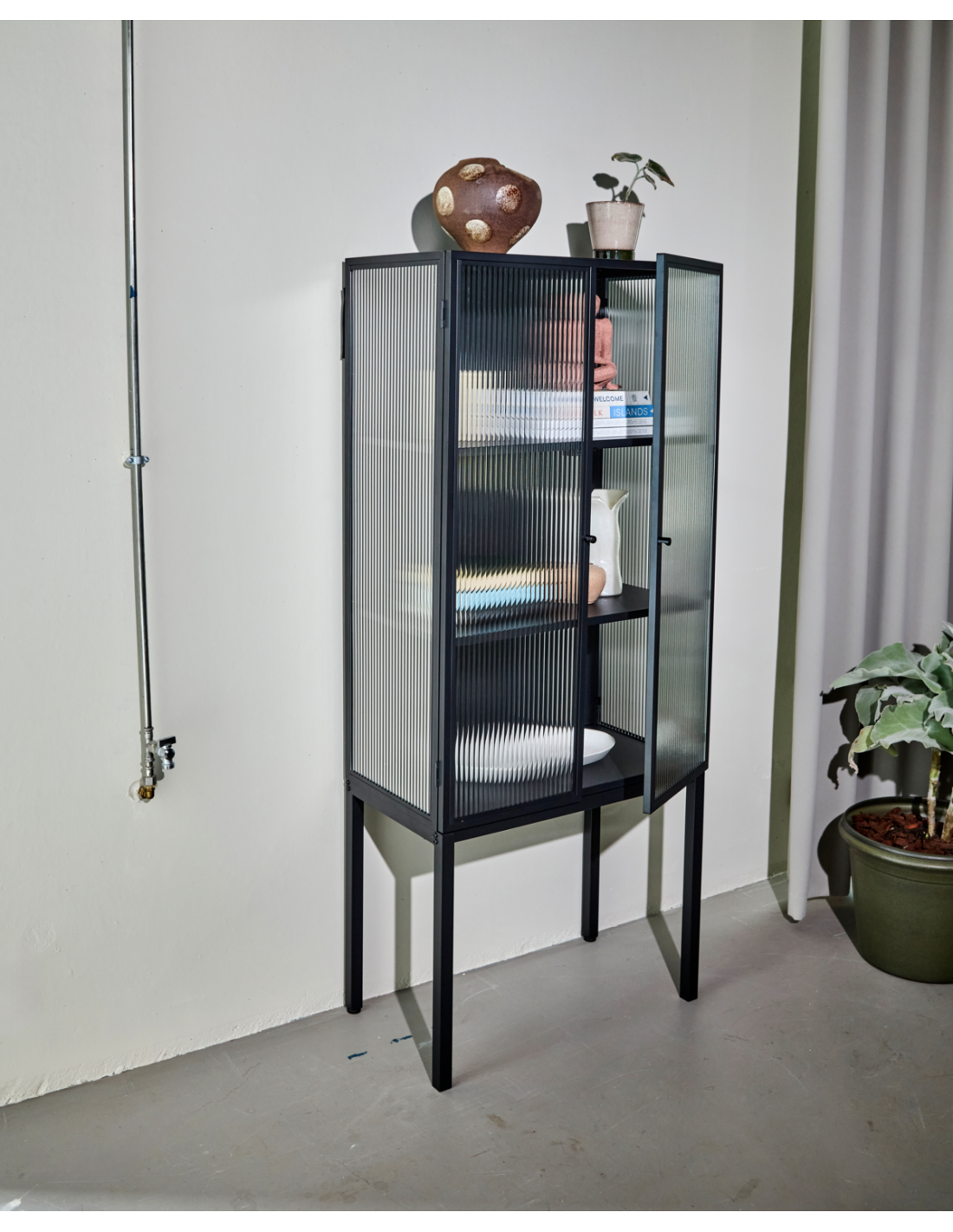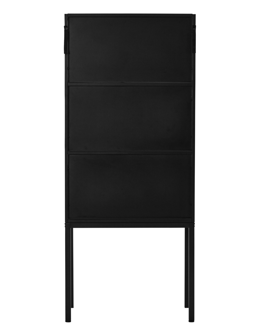 El armario HDCabin está realizado en una estructura de hierro negro con puertas de cristal templado que crean un sutil efecto difuminado.- Resistente estructura de hierro negro.- Puertas de cristal templado.- Almacenaje y vitrina en uno. Requiere montaje. Limpiar con un paño seco para su mantenimiento.