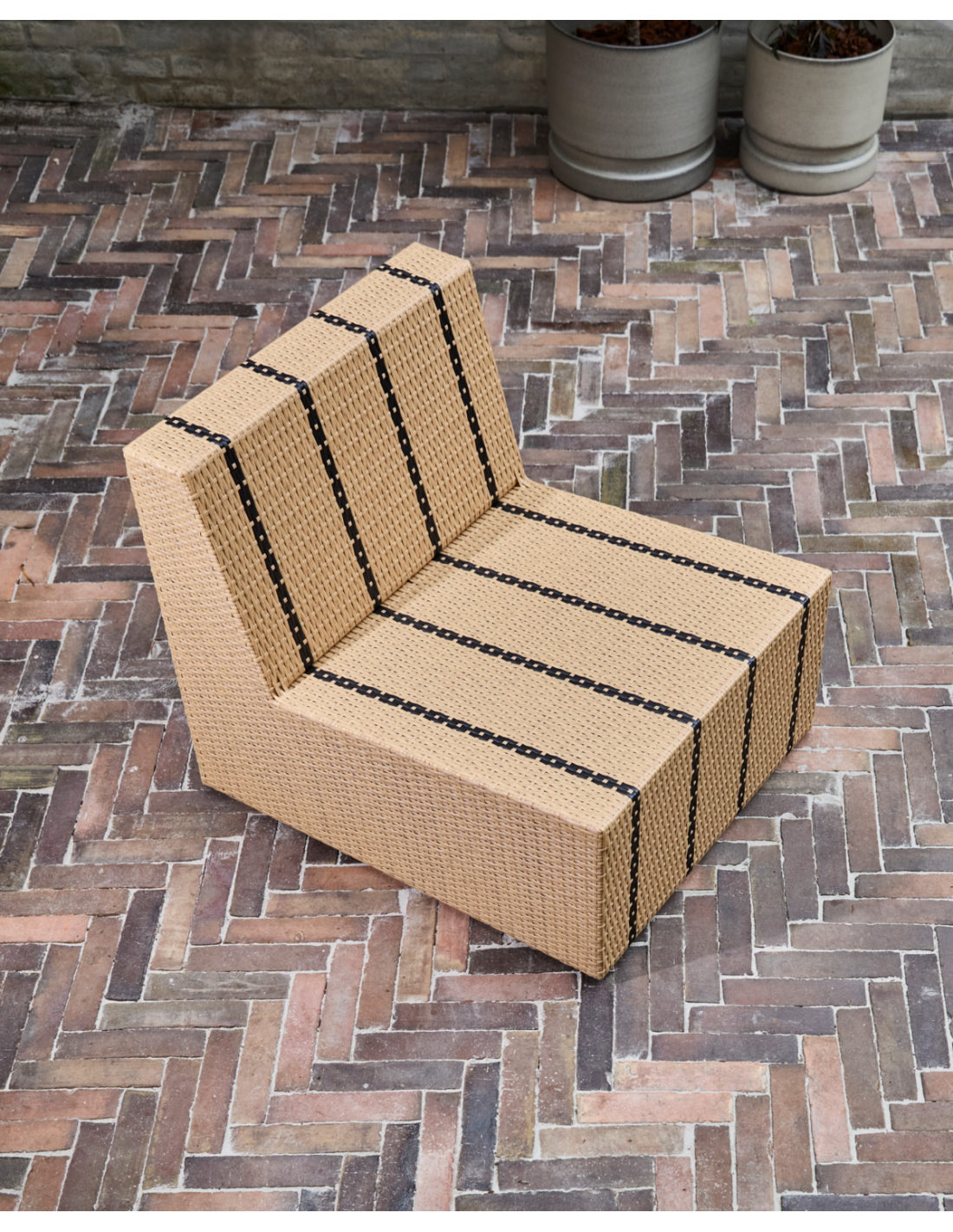 Aporta un toque de carácter a tu hogar con el sillón lounge HDJass. Su forma geométrica y su diseño trenzado, realzados por unas llamativas líneas negras, crean un asiento tan audaz como cómodo, perfecto para tu salón o tu zona de exterior.- Diseño atrevido.- Apto para uso en exteriores.- No requiere montaje.- Limpiar con un paño húmedo. No requiere montaje. Limpiar con un paño húmedo para su mantenimiento.