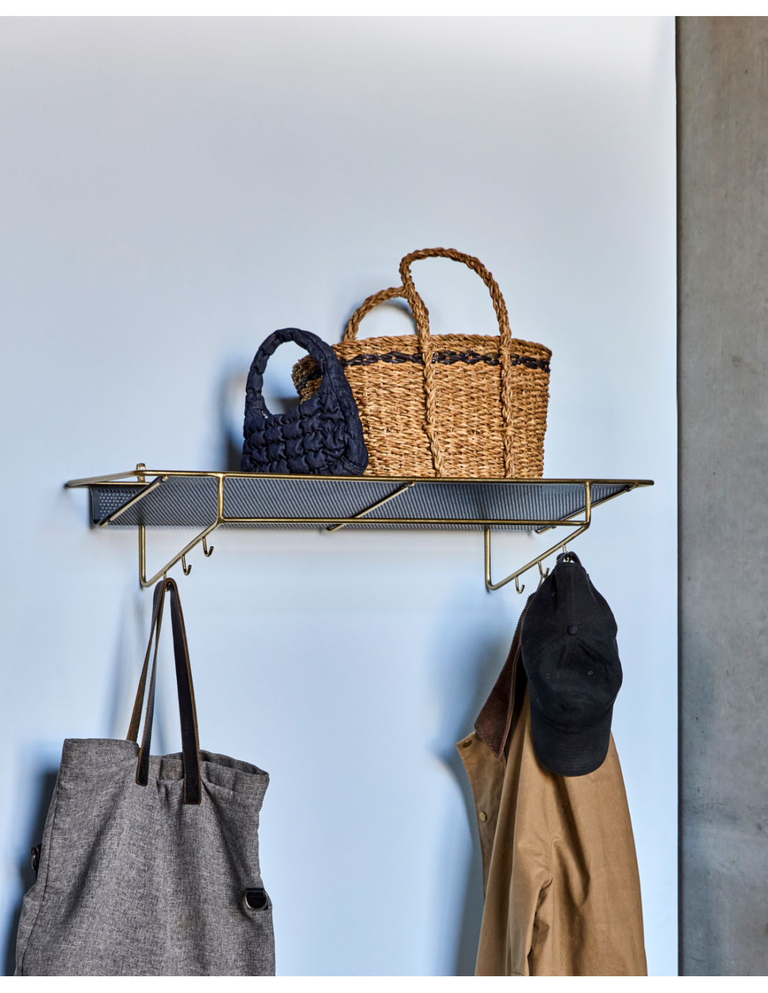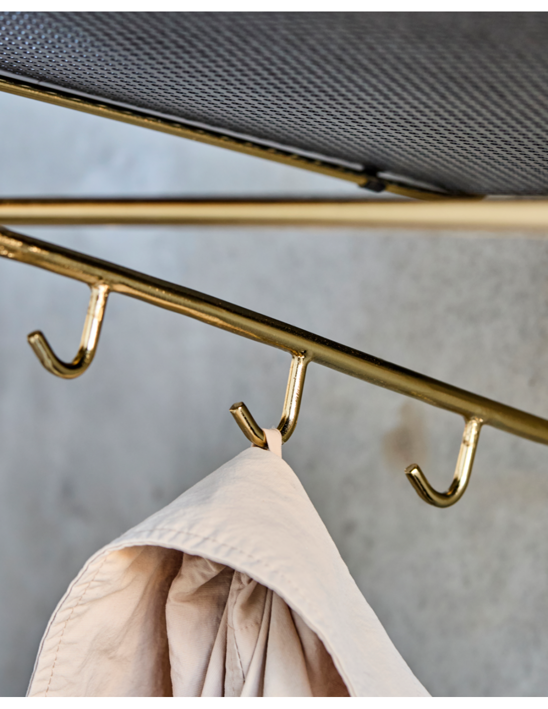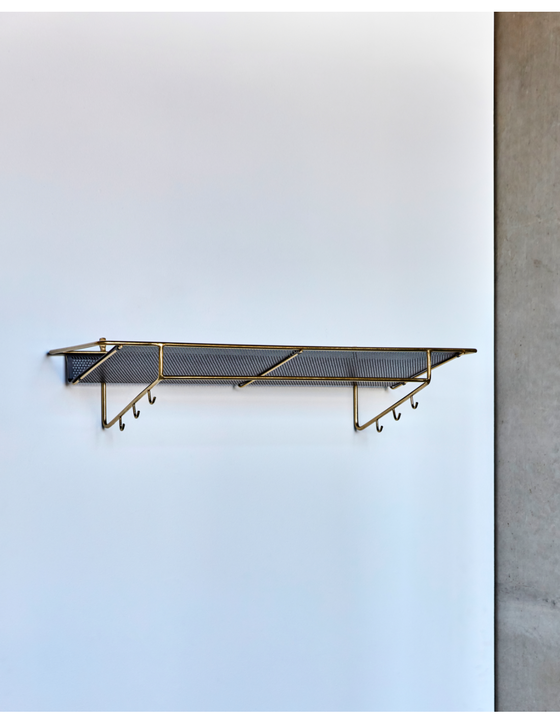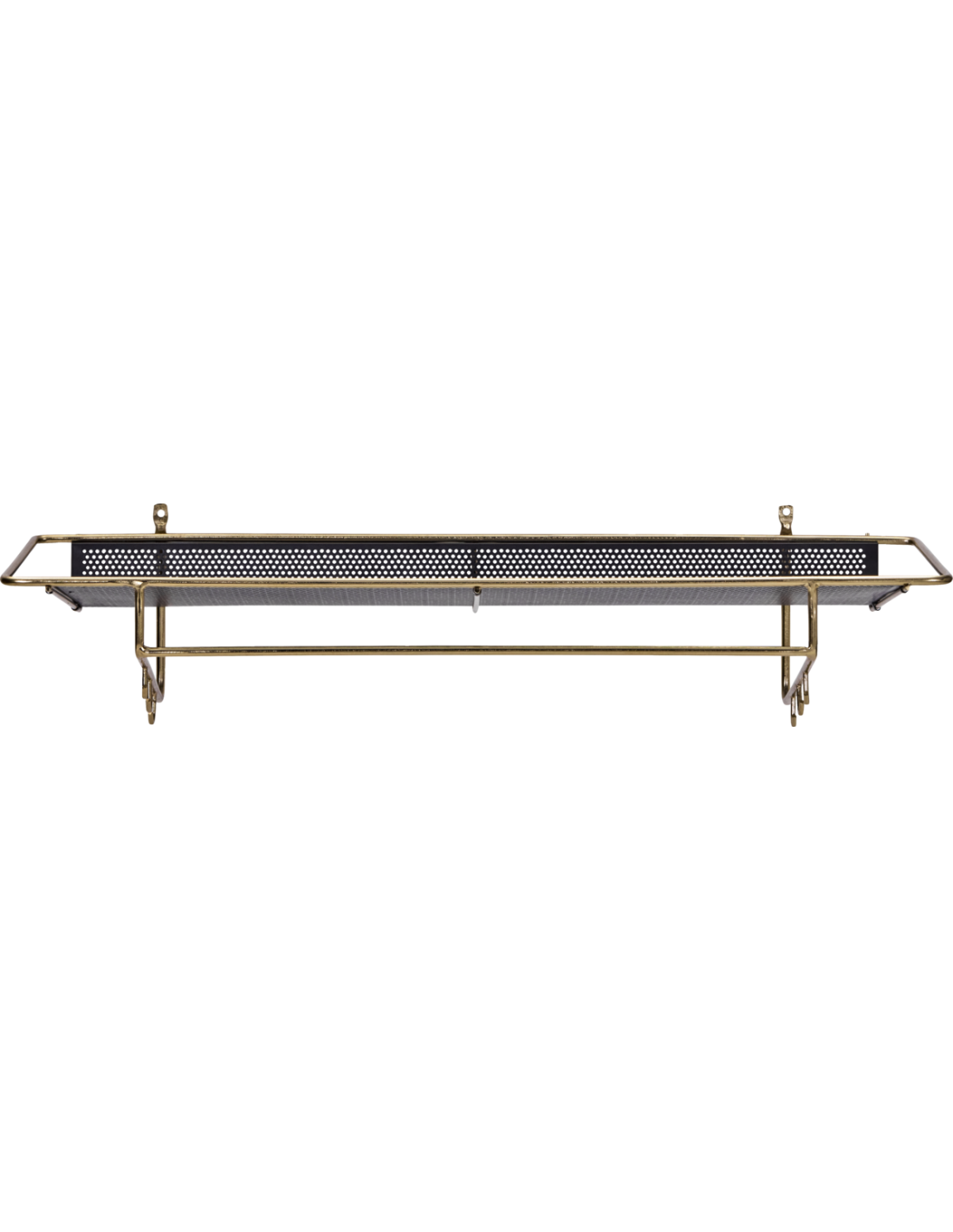 Transforma tu entrada o vestidor en un espacio práctico y lleno de carácter con esta estantería de acabado en latón envejecido y estante negro. El marco redondo de metal da un aire nostálgico y elegante, mientras que las perforaciones en el estante aportan ligereza visual y un guiño moderno. Seis ganchos y una barra inferior la hacen perfecta para colgar abrigos, bufandas o bolsos, manteniendo todo en orden. Atiende tanto a la funcionalidad como al estilo, y encaja igual de bien en la entrada, el dormitorio o incluso el baño.- Hierro artesanal de alta calidad.- Acabado en latón envejecido.- Seis ganchos y barra multifunción.- Diseño elegante y nostálgico.Renueva cualquier rincón y aporta carácter a tu organización diaria. No requiere montaje. Limpiar con un paño seco para su mantenimiento.