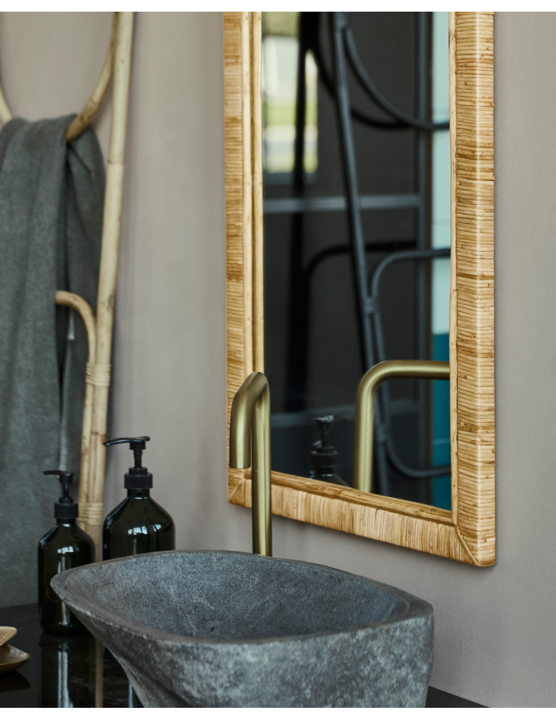Este espejo decorativo añade un toque natural y único a tu hogar. Con un espejo de cristal y un marco hecho de una mezcla de caña y madera de mango, cada pieza es única gracias a su acabado artesanal. Puede colgarse vertical u horizontalmente, adaptándose a diferentes espacios y preferencias estilísticas, ofreciendo tanto funcionalidad como belleza.- Marco artesanal de caña y madera de mango- Acabado natural cálido- Opciones versátiles de montaje- Complementa magníficamente el arte muralIncorpora este espejo a tu decoración y disfruta de su estilo único y versátil.