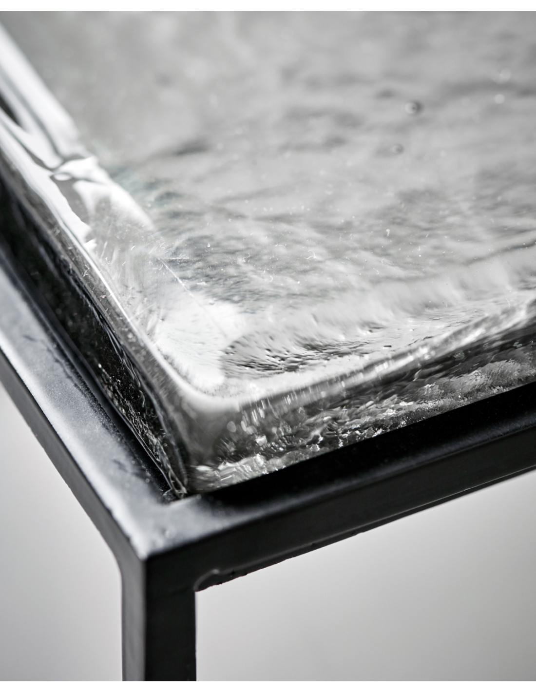 Mejora tu hogar con esta hermosa mesa auxiliar hecha a mano. Con un robusto marco de hierro y una pesada encimera de vidrio, combina fuerza y elegancia. El vidrio parcialmente transparente tiene una textura interesante que añade vida y carácter a cualquier habitación. Perfecta como mesa auxiliar o mesita de noche, se integra perfectamente en interiores modernos, industriales y minimalistas.- Calidad artesanal- Textura de vidrio intrigante- Robusto marco de hierro- Versátil para diversos espaciosAñade esta pieza exquisita a tu hogar para un toque de sofisticación. No requiere montaje. Limpiar con un paño seco para su mantenimiento.