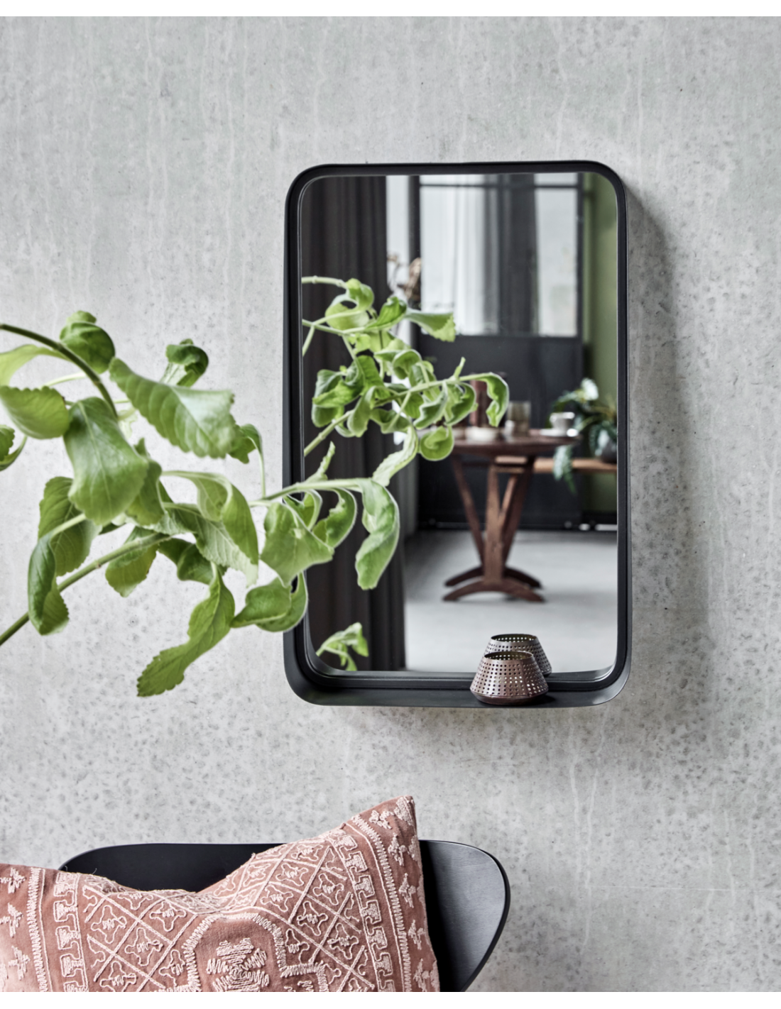 Con este encantador espejo con marco de acero negro antiguo, puedes añadir tanto estilo como funcionalidad a tu espacio. Su diseño minimalista y su estante integrado lo hacen perfecto para áreas pequeñas donde necesitas un toque de elegancia y practicidad.- Marco de acero negro antiguo- Diseño minimalista y versátil- Estante integrado para pequeños objetos- Ideal para espacios compactosMejora tu decoración con este elegante y funcional espejo. Limpiar con un paño seco para su mantenimiento.