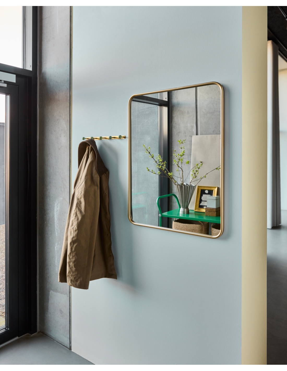 Transforma tu hogar con este elegante espejo de marco dorado. Su diseño minimalista con esquinas suavemente redondeadas refleja la luz y amplía visualmente cualquier estancia, aportando un toque de sofisticación nórdica a tu decoración interior.- Marco dorado deslumbrante.- Diseño elegante y minimalista.- Acabado premium en acero.- Superficie de vidrio cristalino.Colócalo en la entrada, el dormitorio o el salón para crear un punto focal que ilumine y transforme el espacio. Limpiar con un paño seco para su mantenimiento.