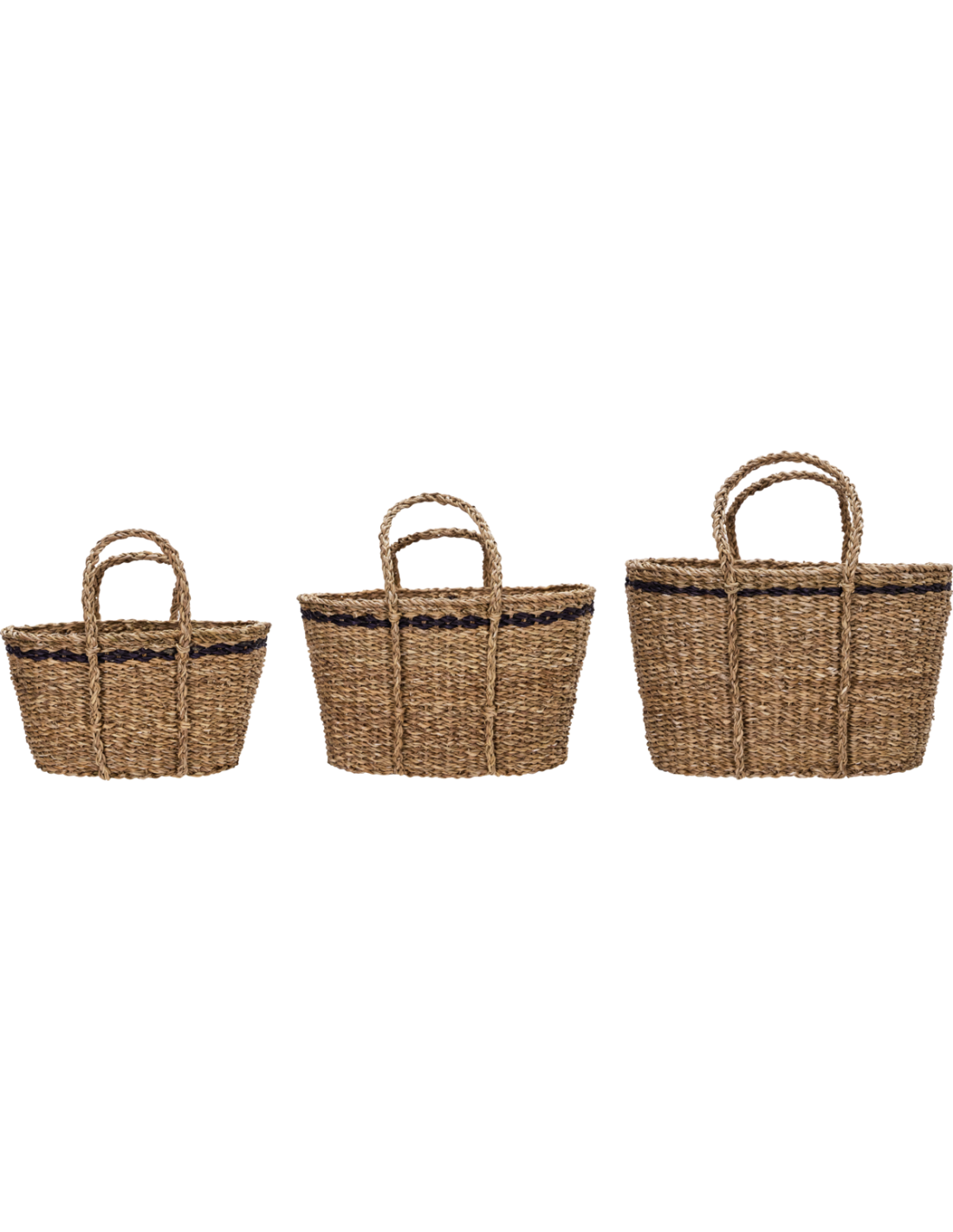 Aporta calidez y orden a tu hogar con este juego de tres cestas hechas a mano de algas marinas. El tono natural y los detalles trenzados realzan cualquier ambiente, desde la entrada hasta el dormitorio. Usa las cestas para mantas, juguetes o ropa y añade un toque rústico y acogedor en cada rincón.- Juego de 3 cestas.- Algas marinas naturales artesanales.- Diseño atemporal y cálido.- Asas integradas prácticas.Dale personalidad y organización a tu espacio con la belleza de la artesanía natural. Limpiar con un paño seco para su mantenimiento.