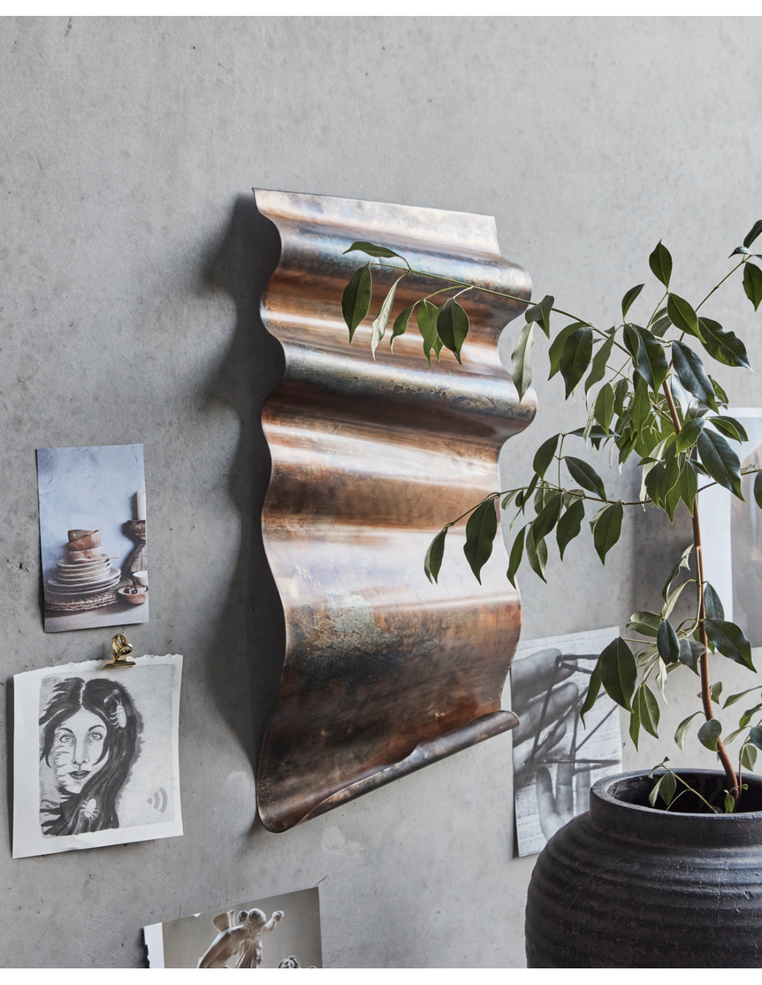 Este mural de House Doctor le dará un toque moderno a tu hogar: su acabado tiene un toque industrial, mientras que una forma ondulada completa el diseño. Cuélgalo en la pared del salón entre cuadros, apliques y estantes para un look muy conseguido, o úsalo para vestir las paredes desnudas del pasillo. Este elemento decorativo, con mucha personalidad y carácter, añade textura y profundidad a cualquier estancia. Limpiar con un paño seco para su mantenimiento.