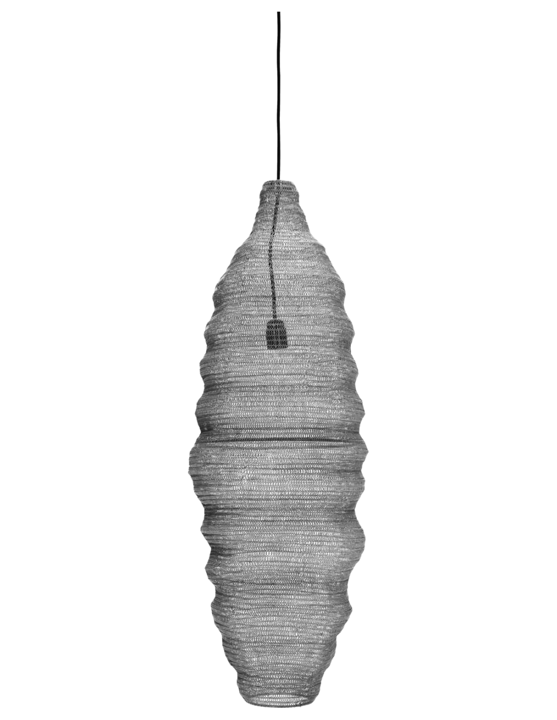 Esta elegante lámpara colgante de malla con acabado plateado cepillado transformará cualquier estancia de tu hogar. Elaborada artesanalmente en hierro, su diseño industrial permite que la luz se filtre sutilmente a través de la estructura, creando un ambiente cálido y acogedor que realza la decoración de cualquier estilo, desde bohemio hasta minimalista.- Diseño artesanal exclusivo.- Hierro con acabado plateado.- Estilo industrial versátil.- Iluminación ambiental acogedora.Colócala en tu dormitorio, salón o entrada para añadir un toque de carácter y calidez a tu decoración interior. Limpiar con un paño seco para su mantenimiento.