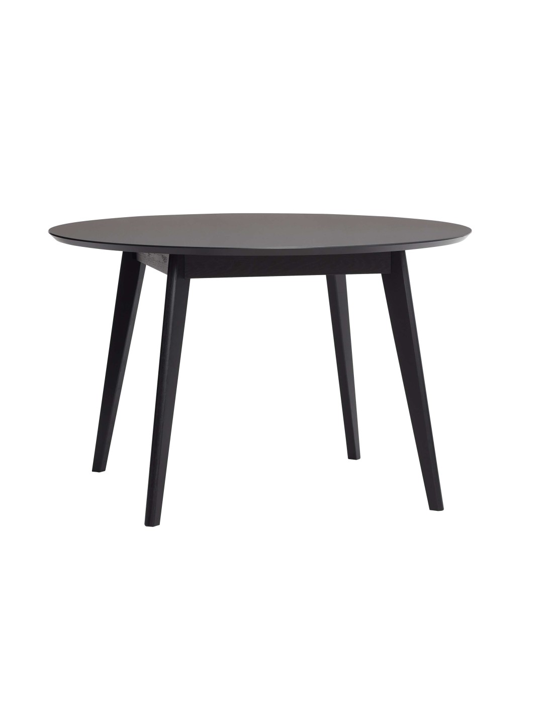 Mesa de comedor redonda, elaborada 100% en madera de roble pintada negro, con acabado nano-laminado para un extra de resistencia. Ideal para cuatro plazas. Pasión por el diseño escandinavo de Hübsch.