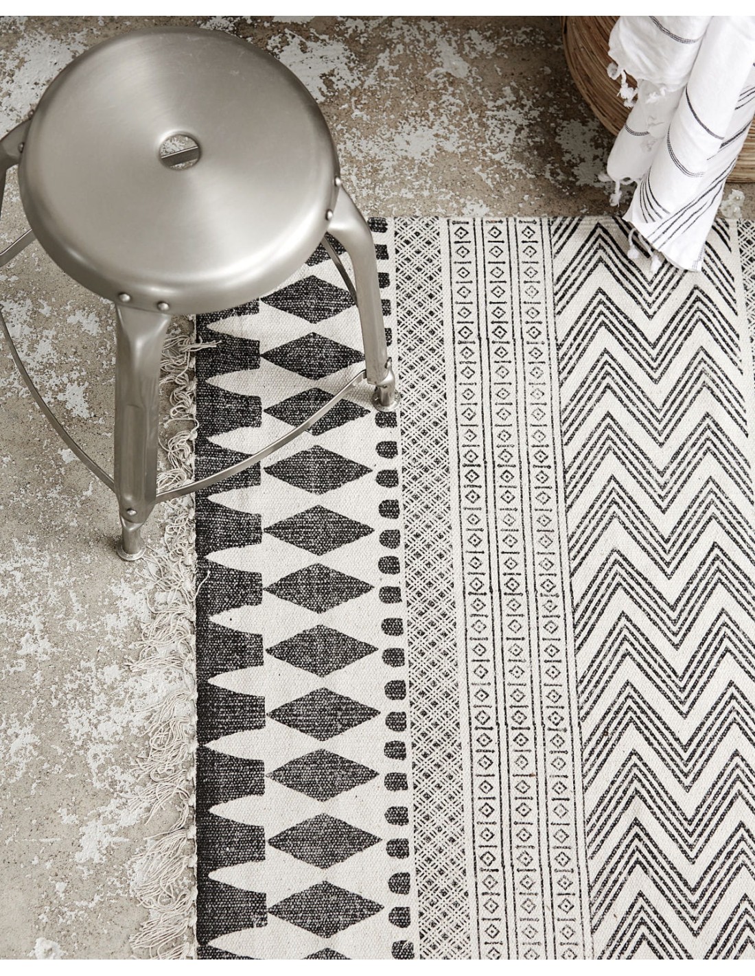 Complementa tu interior con una alfombra decorativa. Block, de House Doctor, es una alfombra moderna con un patrón gráfico en tonos grises y negros. Es ideal para añadir un toque personal a tu hogar. Para muchos, el suelo es lo primero que llama la atención al entrar en una habitación, y una alfombra puede cambiar por completo el tono y el estilo del espacio. Utiliza la alfombra Block de House Doctor bajo la mesa de centro o en el pasillo. Una alfombra bonita tiene la capacidad de unificar la estancia y aporta suavidad sobre los suelos de madera. También es perfecta para crear un contraste elegante en interiores luminosos y sobrios.