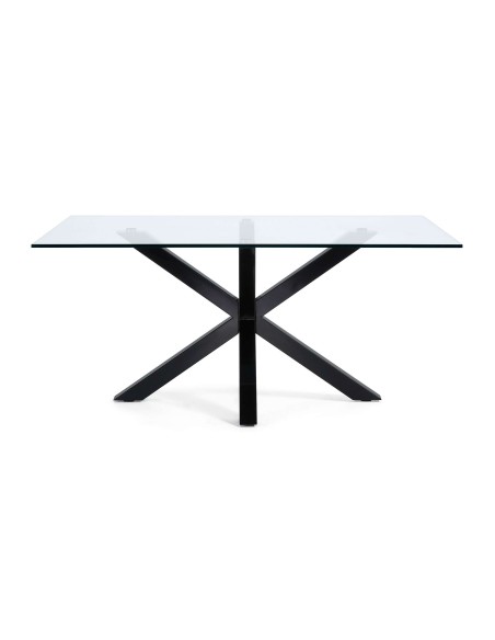 Mesa Argo 180 x 100 cm cristal/patas acero negro - Kave Home.