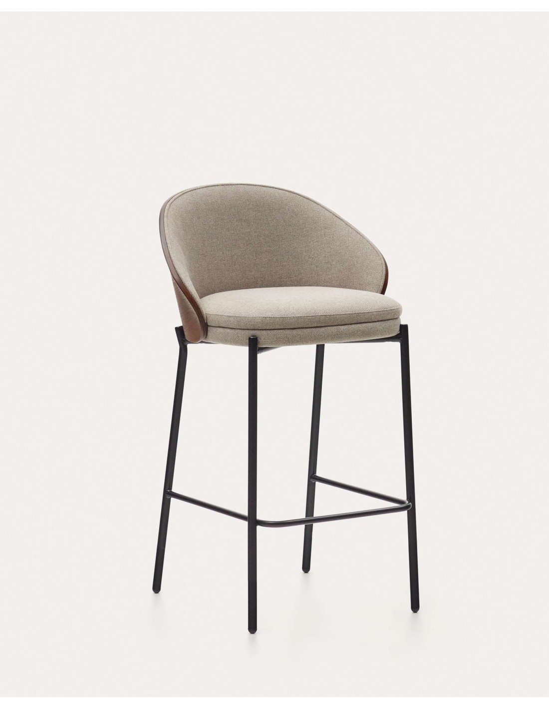Taburete Eamy marrón claro chapado en fresno acabado wengué y metal negro altura 65 cm - Kave Home