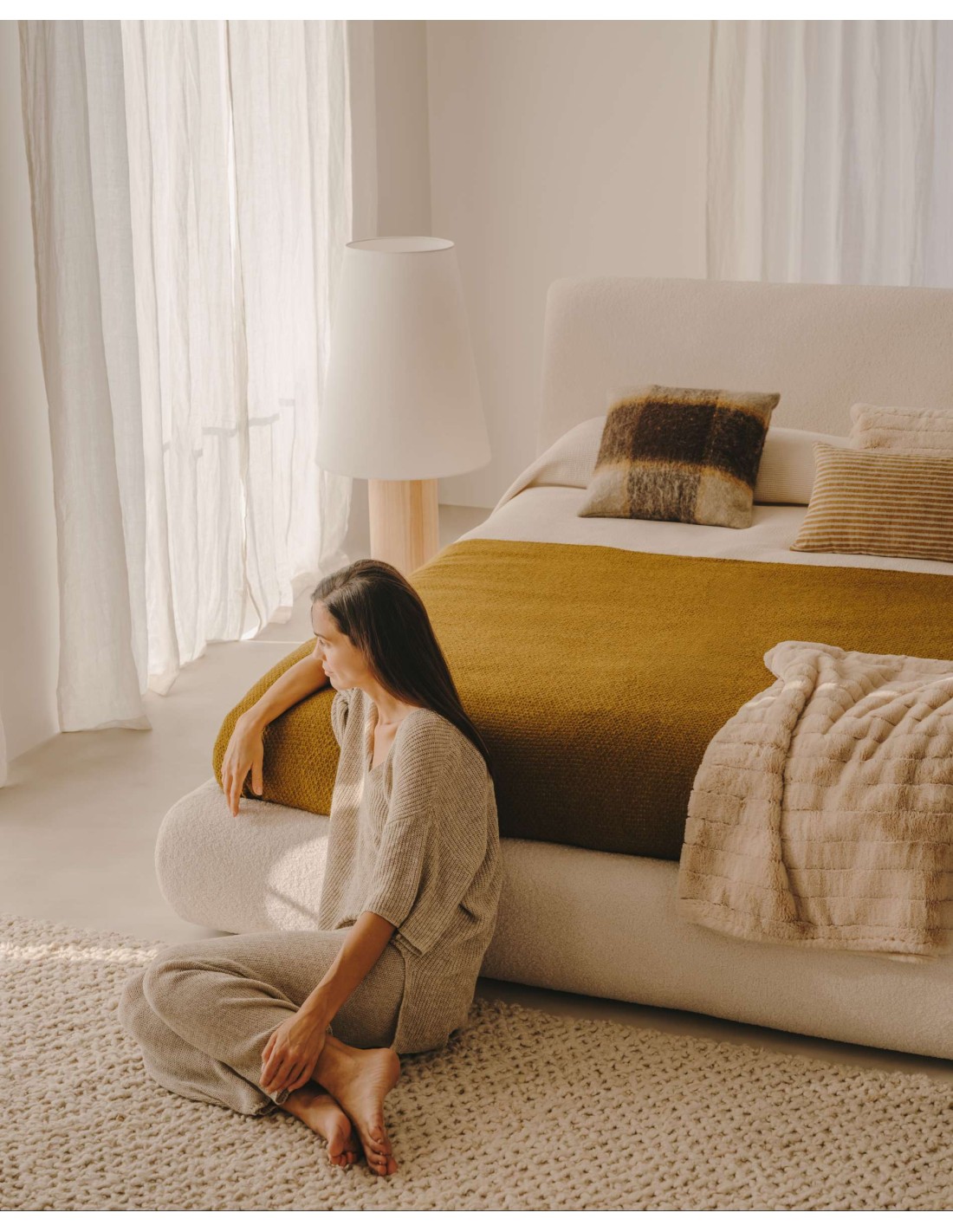 El equipo de Kave Home ha diseñado la cama Martina, creada para descansar y cuidar el planeta. Su tapizado está compuesto de poliéster 100% con un acabado de efecto borreguito, para una suavidad extra.
