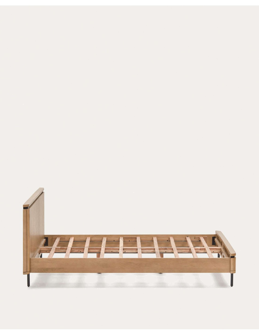 Cama Licia de madera maciza de mango y metal pintado negro para colchón de 160 x 200 cm - Kave Home.