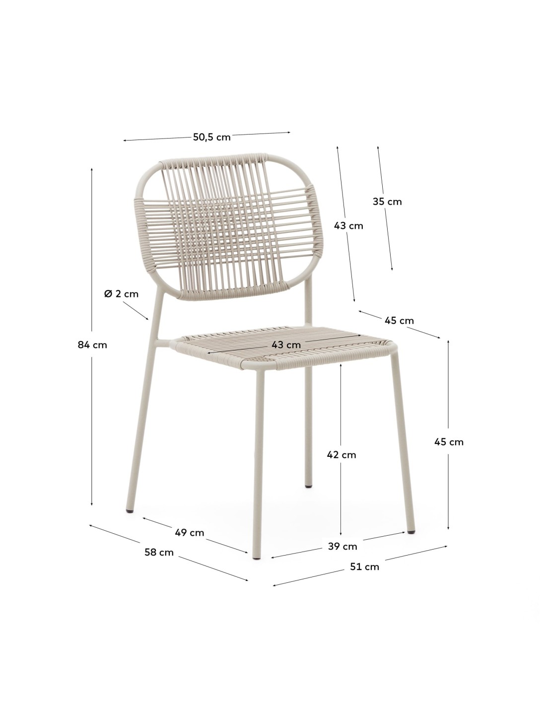 Silla de exterior apilable Talaier de cuerda sintética y acero galvanizado acabado beige - Kave Home