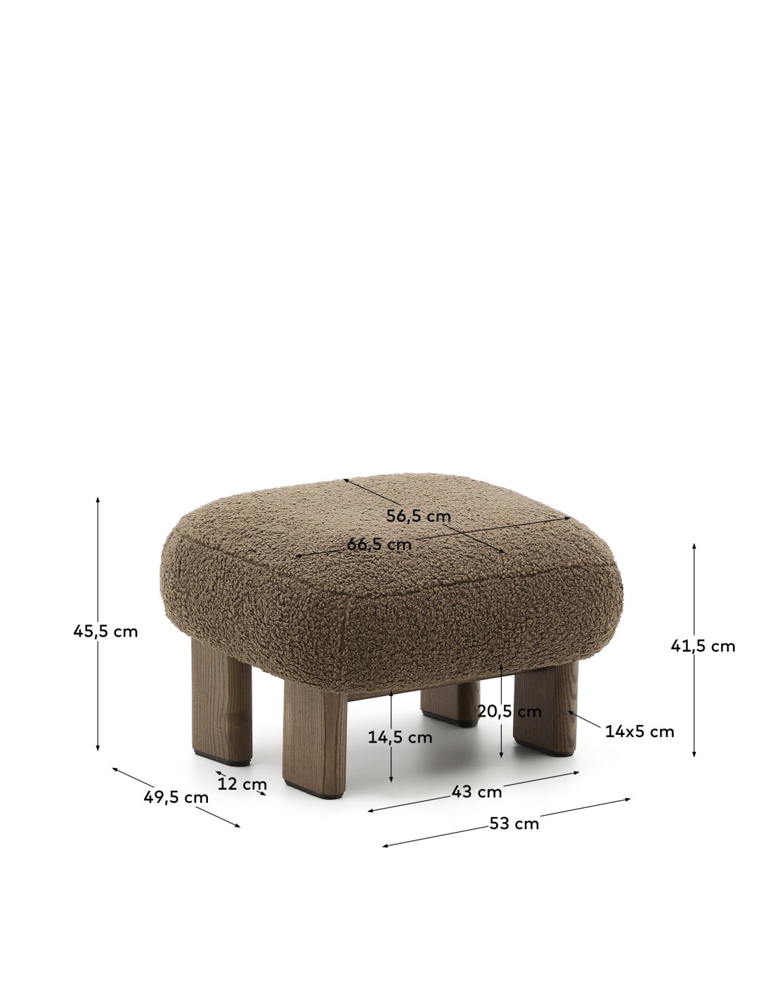 Reposapiés Cabana borreguito topo y patas madera maciza fresno acabado nogal 65x55,4cm FSC 100% - Kave Home