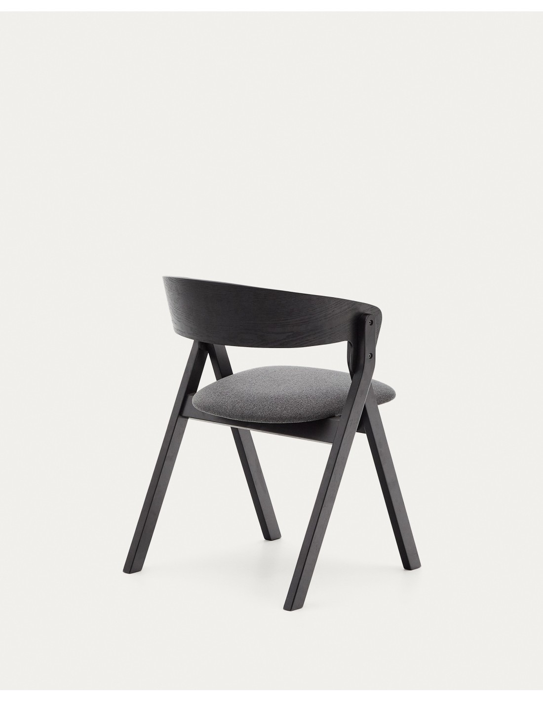 Silla Godia de chapa de fresno y madera maciza de caucho acabado negro y chenilla gris - Kave Home